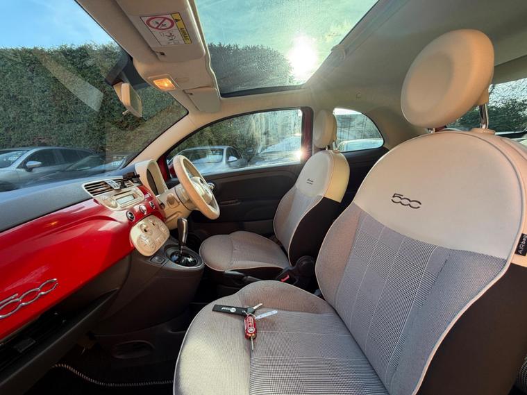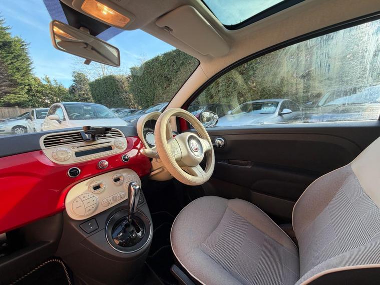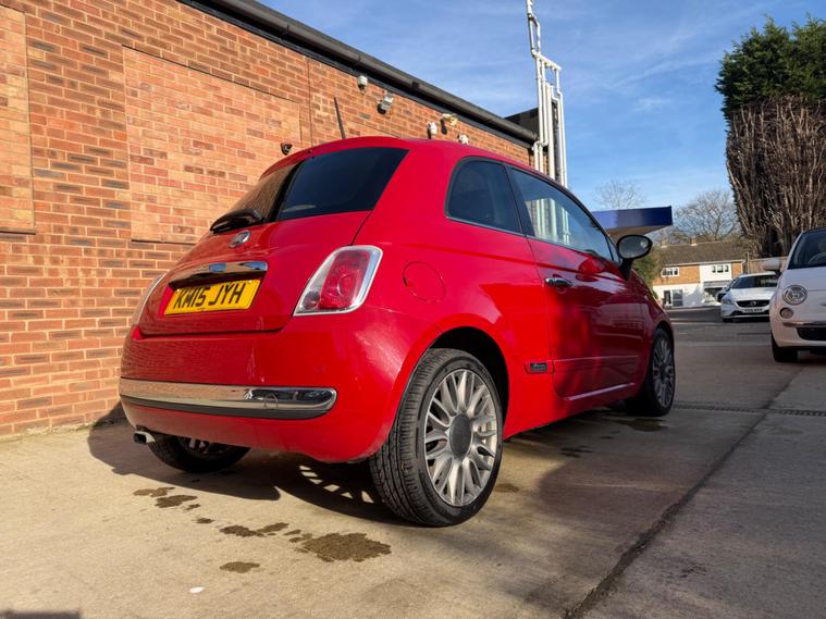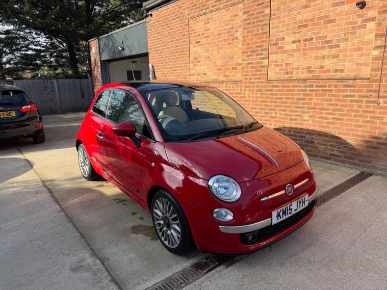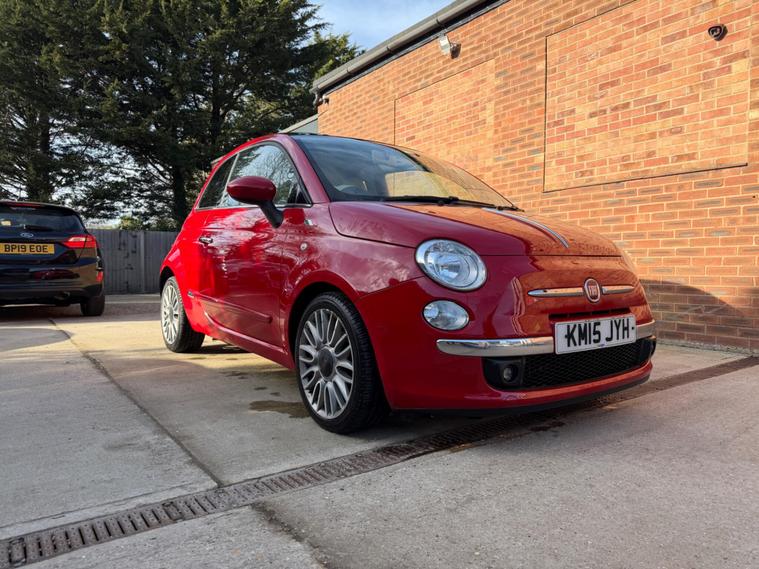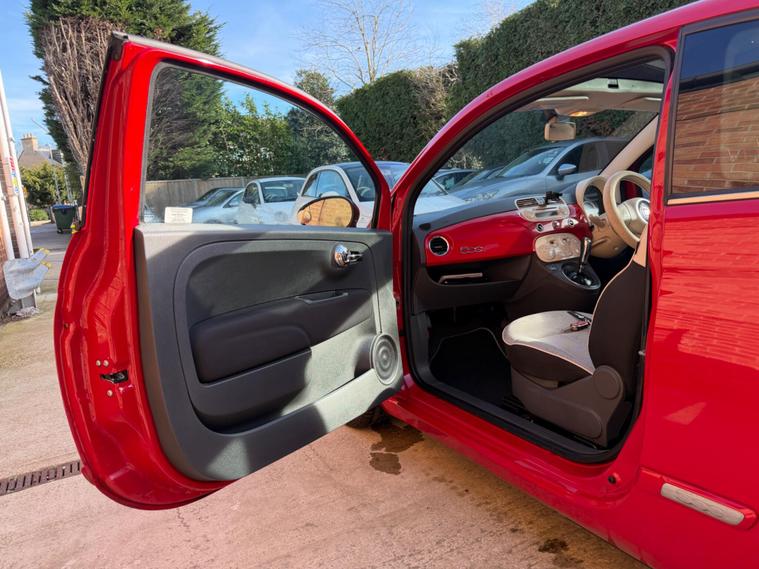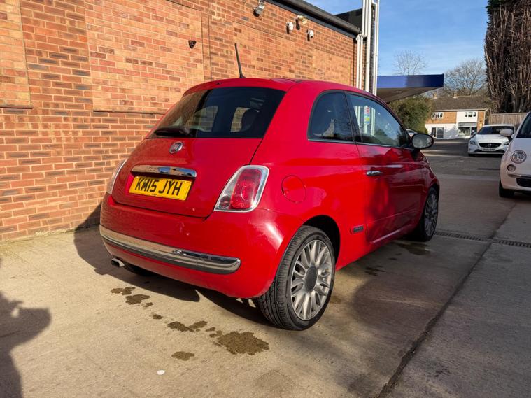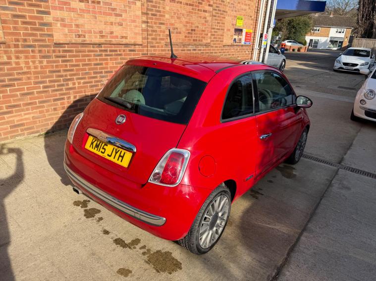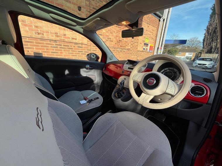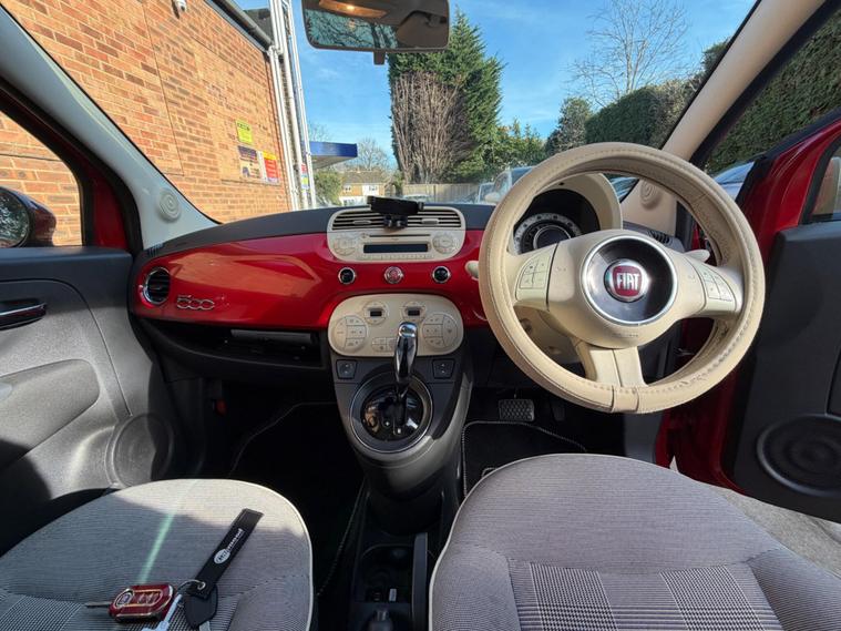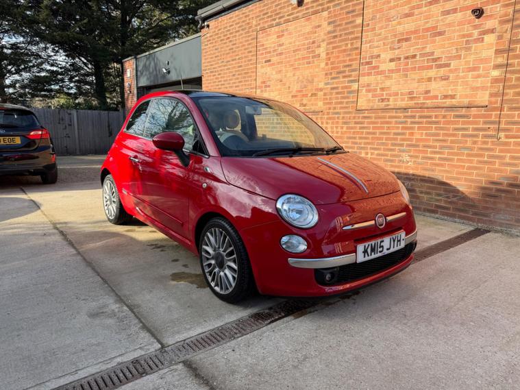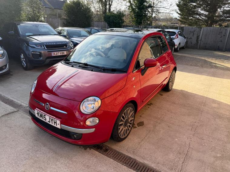 **Fiat 500 0.9 TwinAir Lounge Dualogic Euro 6 (s/s) 3dr****Registration:** KM15JYH**Year:** 2015 (15)**Mileage:** 44, 200 miles**Fuel:** Petrol**Transmission:** Automatic**Colour:** Red**Owners:** 4 Owners**Price:** £6, 995---**Step-by-step vehicle details:**• Only 44, 200 miles – very low mileage• 4 Owners from new• Partial Service History• Clear vehicle history check• MOT valid until February 2027• Euro 6 – ULEZ compliant• Excellent fuel economy – up to 72 MPG• Low CO₂ emissions – economical to run• Smooth and reliable automatic gearbox• Efficient and responsive 0.9L TwinAir petrol engine• **3 MONTHS AA WARRANTY AND 12 MONTHS AA BREAKDOWN COVER**---**Features and equipment:**• Panoramic glass roof• 15'' Diamond finish alloy wheels• Dark tinted rear windows• Interscope Hi-Fi premium sound system• Bluetooth connectivity• Air conditioning• Electric windows• Remote central locking• Multi-function steering wheel• AUX and USB connection• Stylish and compact city car – easy to drive and park---A very stylish, economical, and low mileage automatic car. Ideal for city driving, first car, or daily commuting.---**For more available cars:* dealer's website or call:** 01223964083**Postcode:** CB24 9LQ.