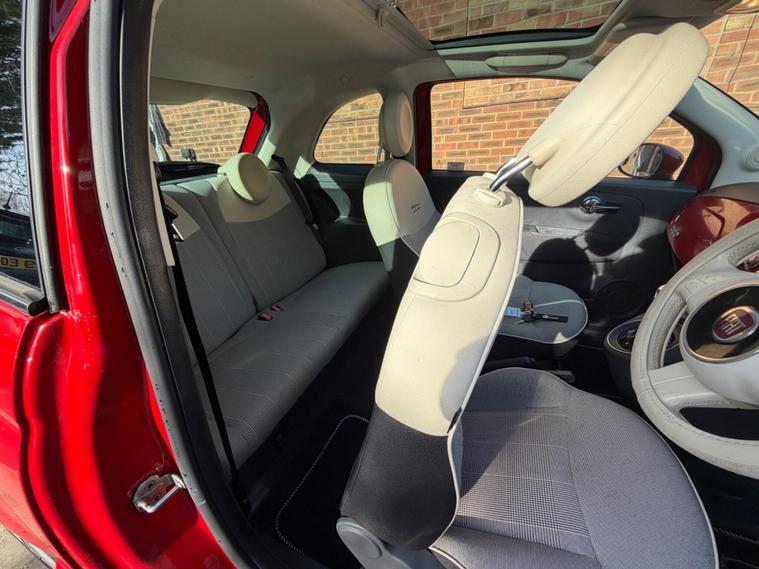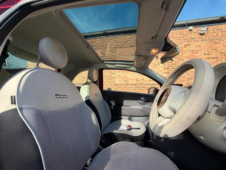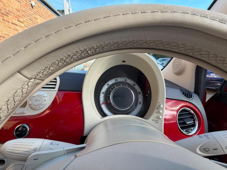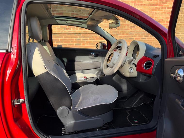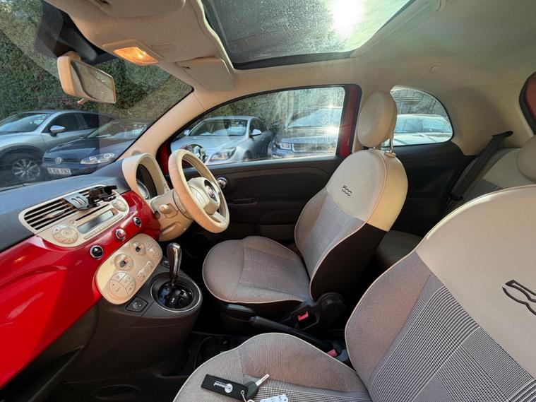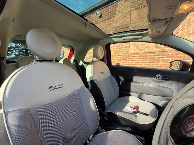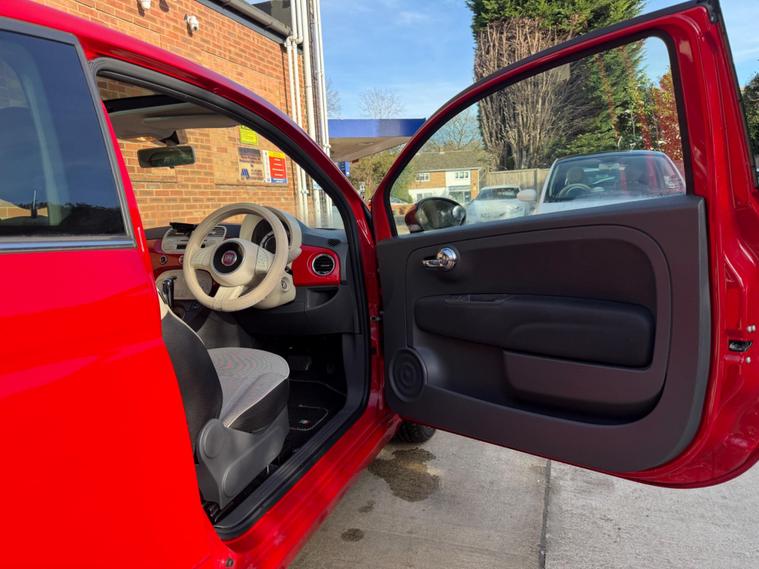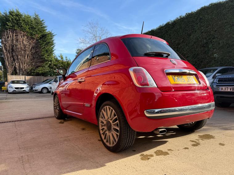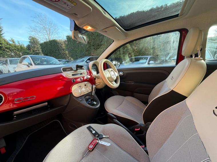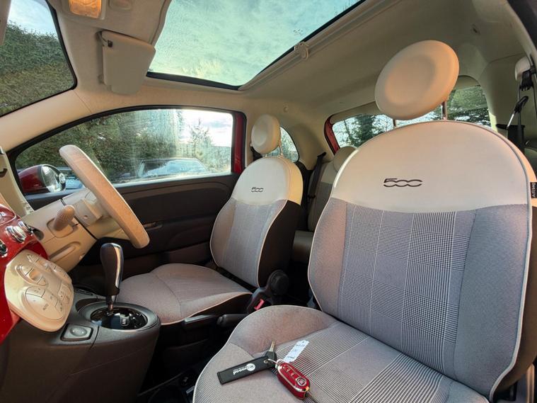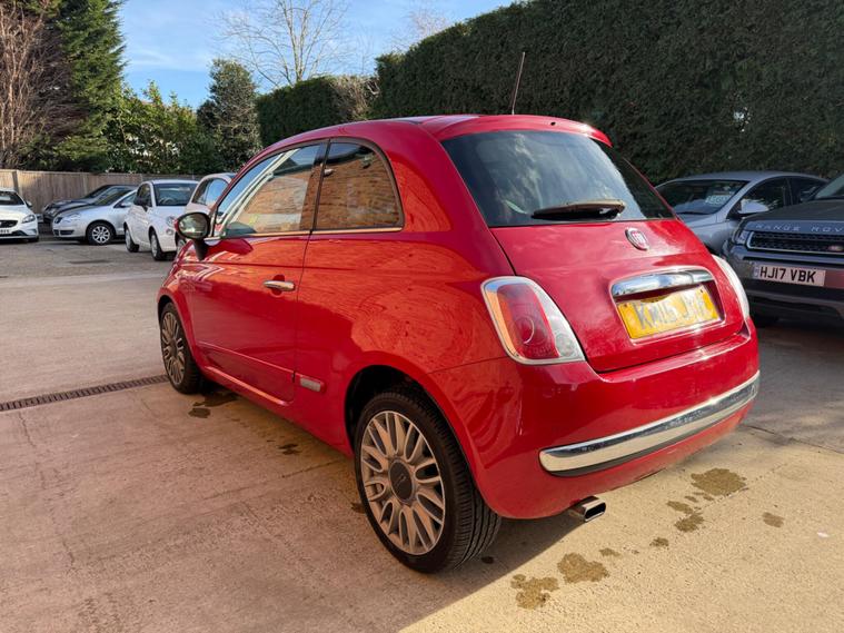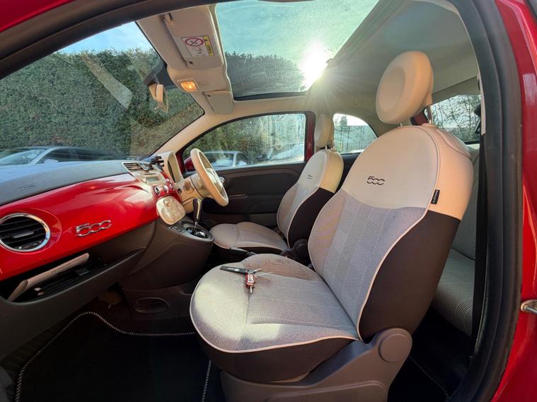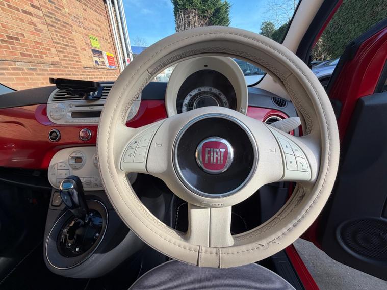 **Fiat 500 0.9 TwinAir Lounge Dualogic Euro 6 (s/s) 3dr****Registration:** KM15JYH**Year:** 2015 (15)**Mileage:** 44, 200 miles**Fuel:** Petrol**Transmission:** Automatic**Colour:** Red**Owners:** 4 Owners**Price:** £6, 995---**Step-by-step vehicle details:**• Only 44, 200 miles – very low mileage• 4 Owners from new• Partial Service History• Clear vehicle history check• MOT valid until February 2027• Euro 6 – ULEZ compliant• Excellent fuel economy – up to 72 MPG• Low CO₂ emissions – economical to run• Smooth and reliable automatic gearbox• Efficient and responsive 0.9L TwinAir petrol engine• **3 MONTHS AA WARRANTY AND 12 MONTHS AA BREAKDOWN COVER**---**Features and equipment:**• Panoramic glass roof• 15'' Diamond finish alloy wheels• Dark tinted rear windows• Interscope Hi-Fi premium sound system• Bluetooth connectivity• Air conditioning• Electric windows• Remote central locking• Multi-function steering wheel• AUX and USB connection• Stylish and compact city car – easy to drive and park---A very stylish, economical, and low mileage automatic car. Ideal for city driving, first car, or daily commuting.---**For more available cars:* dealer's website or call:** 01223964083**Postcode:** CB24 9LQ.