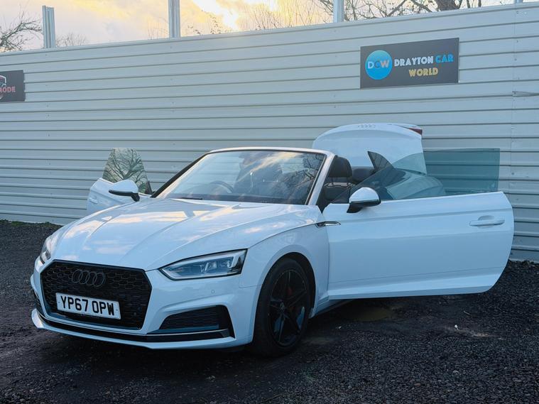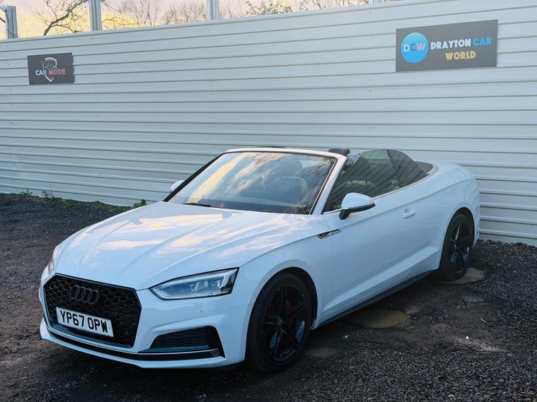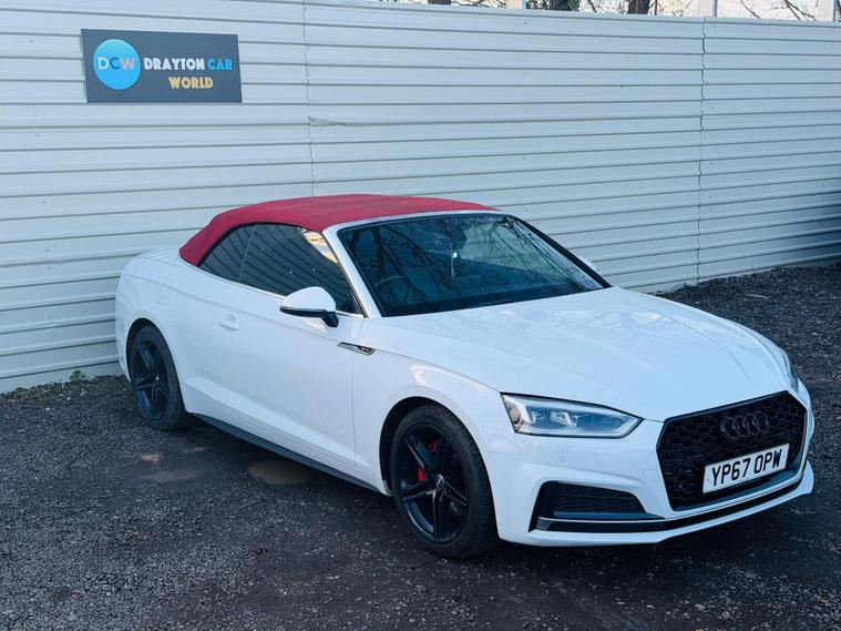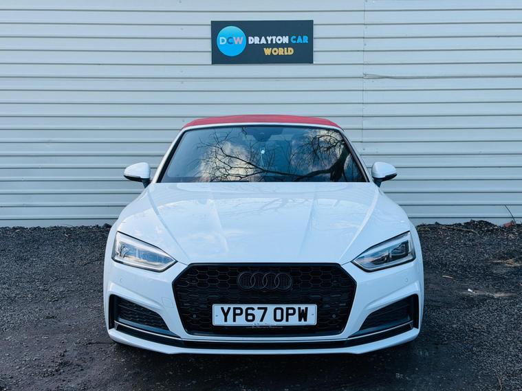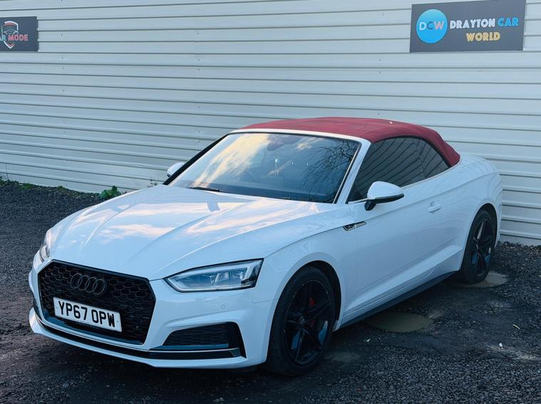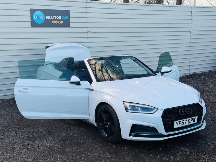 **HOME DELIVERY AVAILABLE**Drayton Car World are delighted to offer this stunning Audi A5 Cabriolet TDI S line the car is presented in excellent condition both inside and out.This 2017 Audi A5 Cabriolet TDI S line offers an exceptional blend of style and efficiency, boasting a remarkable 61 mpg fuel economy. As a Euro 6 compliant vehicle, it also benefits from low CO2 emissions, making it an environmentally conscious choice. This S line trim model features a powerful yet economical 2.0 litre diesel engine, paired with a smooth transmission. Inside, you'll find a host of desirable features designed for comfort and convenience, including heated front seats for those cooler days, a deluxe 3 zone climate control system with independent rear air conditioning, and a Bluetooth interface for seamless connectivity. The advanced LED headlights with dynamic rear indicators ensure excellent visibility and a distinctive presence on the road, complemented by automatic headlights and a useful rain sensor.Experience the thrill of responsive performance with a 0-60mph acceleration time of just 8.0 seconds, demonstrating how this Audi A5 Cabriolet offers a more engaging drive than many comparable vehicles. The generous boot space provides ample practicality for your luggage or shopping, further enhancing its appeal as a versatile convertible. The combination of its impressive fuel efficiency, low emissions, and dynamic capabilities positions this Audi A5 Cabriolet as a standout option for those seeking a premium driving experience without compromise.It benefits from a full-service history and new MOT. HPI clear. ulez compliant , we offer a 3-month warranty and 12 months of AA Breakdown Cover, home delivery is available so you can buy from the comfort of your own home. we are open from 10am to 7pm , 7 DAYS A WEEK, ALL PART EXCHANGE ARE WELCOME ***ADDRESS *** Willowdene, The Common West Drayton UB7 7HQ***.