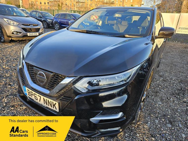 3months warranty, full service history, 2keys, mot till February 2027, heated seats, reverse camera, HPI clear, ulez compliant, cruise control system, Bluetooth, parking sensors, leather seats, Panoramic roof, 2 previous owners, 2keys, timing chain done recently, and many more. Free 12months basic aa breakdown cover, free 20miles delivery also nationwide delivery available for extra cost. In house finance options available. This 2017 Nissan Qashqai DIG-T Tekna is a well maintained example of this popular family car. It features a 1.2 litre petrol engine and meets Euro 6 emissions standards. This Tekna model comes equipped with the Smart Vision Pack, which includes front and rear parking sensors, and the Tech Pack, adding a rear parking camera. Further enhancing its convenience and safety are the Intelligent Auto Headlights, the Safety Shield with Blind Spot Assistance, and the Intelligent Around View Monitor, providing a 360 degree camera view for effortless parking.This Nissan Qashqai offers excellent running costs, achieving an impressive 50 miles per gallon. Its low CO2 emissions and low insurance group rating further contribute to its affordability, making it a sensible choice for many drivers. These highlights demonstrate how this Qashqai offers a more economical and cost effective ownership experience compared to similar vehicles..