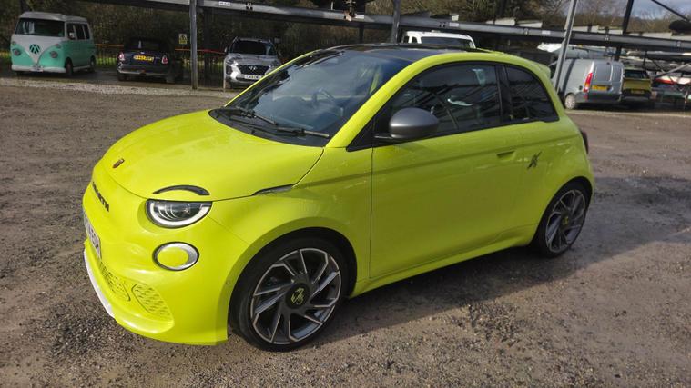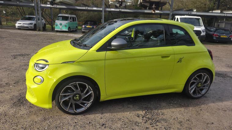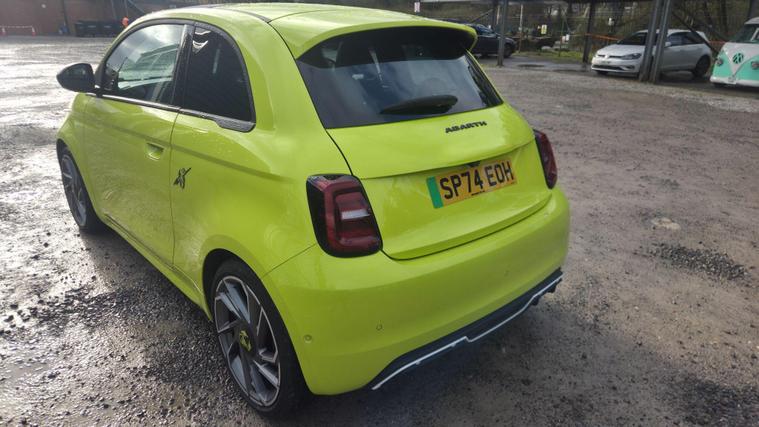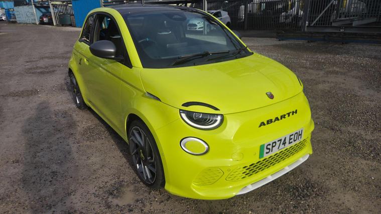 Fantastic value, only just come in as you see it in compound as it come in.Abarth 500e 42kWh Turismo Hatchback 3dr Electric Auto (155 ps), full service history, fantastic drive, great spec. This 2024 Abarth 500e presents an exceptional opportunity with its remarkably low mileage of just 2000 miles. As an electric vehicle, it boasts a 42 kWh battery offering a maximum range of 164 miles when new. Charging at home using a 7kW charger will take approximately 15 hours and 15 minutes, while rapid public charging can replenish the battery from empty to 80% in as little as 35 minutes. This Abarth 500e comes equipped with a JBL Premium Hi Fi system, part of the Scorpion Sound Pack, ensuring an immersive audio experience. For convenience and safety, it features front, rear, and side parking sensors with parking assistance, and the driver's seat includes mechanical memory settings. Enjoy the outdoors with the fixed glass roof and its integrated sun shade.Experience exhilarating performance with the Abarth 500e's impressive acceleration, reaching 0-62mph in just 7.0 seconds, a figure that sets it apart from many other electric vehicles. This swift response, combined with its compact size and electric powertrain, makes for a dynamic and engaging driving experience. The combination of its advanced features, low mileage, and potent electric performance makes this Abarth 500e a compelling choice for those seeking a stylish and spirited electric car...