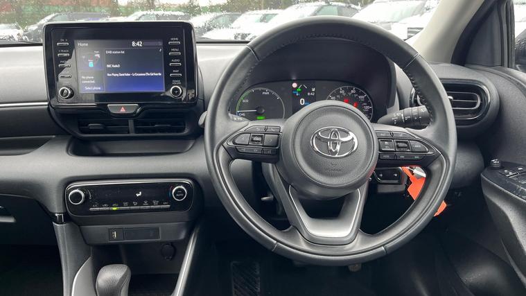 This 2023 Toyota Yaris VVT-h Icon is a Toyota manufacturer approved vehicle with a full service history and only one owner from new, offering you complete peace of mind. This stylish hatchback features a 1.5L petrol hybrid engine, meeting Euro 6 emission standards. It comes equipped with Smartphone Integration, including Apple CarPlay and Android Auto, allowing seamless connection to your devices. For enhanced safety and convenience, it includes Toyota Safety Sense 2 with Adaptive Cruise Control and Automatic Headlights, alongside Bluetooth connectivity.The Yaris Icon stands out with its impressive fuel economy, achieving a remarkable 69 mpg, which indicates it is more economical than many other vehicles in its class. Furthermore, its low insurance group and low CO2 emissions highlight its cost effectiveness and environmental consideration compared to similar cars. This well maintained Yaris also benefits from a 12 month warranty, ensuring your ownership experience is both enjoyable and secure..
