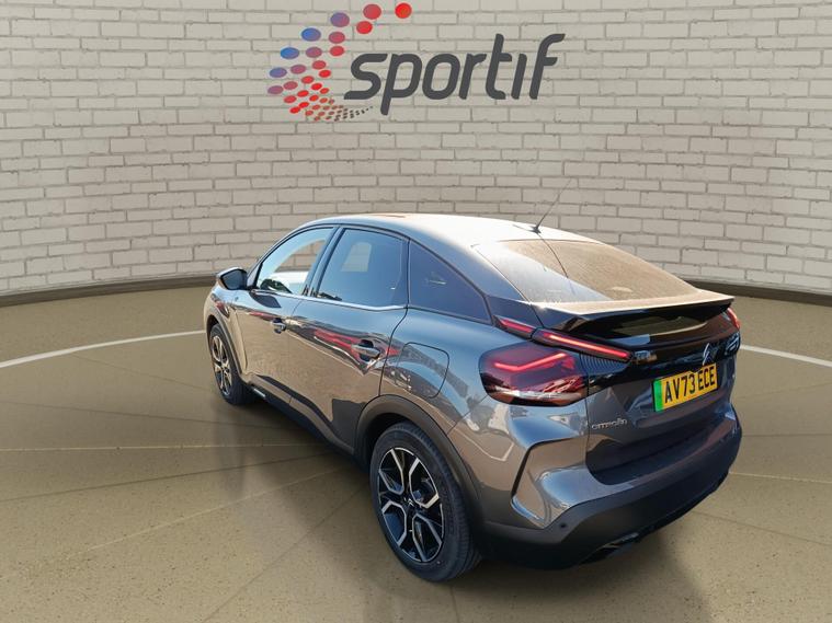 This 2023 Citroen e-C4 Shine Plus is a truly exceptional example, boasting a single owner and an incredibly low mileage of just 8120 miles, making it remarkably well preserved for its age. As a fully electric vehicle, it offers a smooth and quiet driving experience with a battery offering a maximum range of 219 miles when new. Charging is convenient, with a full charge at home taking approximately 7 hours and 30 minutes using a 7kW charger, and a rapid charge to 80% achievable in just 30 minutes at a public charging station. This Citroen is manufacturer approved, comes with a 12 month warranty, and will be supplied with a fresh 12 month MOT. Its full service history further assures its excellent condition.The Shine Plus trim level comes equipped with a host of desirable features designed to enhance your journey. Experience effortless entry and ignition with Keyless Entry and Start, and navigate tight spots with ease thanks to the Top Rear Vision Reversing Camera and Parking Assistance. The Head Up Display keeps vital information in your line of sight, while Highway Driver Assist, including Adaptive Cruise Control, makes long journeys more relaxed. For added comfort, the Heated Steering Wheel ensures your hands stay warm on colder days. This e-C4 also offers generous boot space, a practical consideration for everyday use. These highlights demonstrate how this particular vehicle stands out from others in its class..