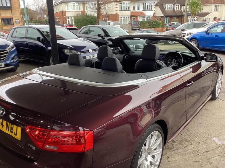 SERVICE HISTORY, 2 KEYS PRESENT **READ OUR HONEST CUSTOMER 5 STAR REVIEWS ON GOOGLE, YOU'LL BE PLEASED YOU CHOSE US** PRICED AT THE ''BUY IT NOW PRICE'' SAVE £100'S!!! This 2014 Audi A5 Cabriolet TFSI S line presents a remarkable opportunity with its exceptionally low mileage of just 60, 000 miles and a history of only two owners. This stylish convertible features the desirable S line trim and is powered by an efficient 1.8 litre petrol engine, meeting Euro 6 emissions standards. Inside, you'll find a comfortable 3 spoke leather steering wheel and the Audi Concert radio system. For practicality and safety, it includes ISOFIX child seat preparation in both the front and rear, along with automatic headlights activated by a light sensor and rear parking sensors to assist with manoeuvring.This Audi A5 Cabriolet offers several advantages that set it apart. Its impressive fuel economy of 46 miles per gallon means fewer trips to the petrol station, and its low CO2 emissions contribute to a more environmentally friendly drive. Furthermore, its low insurance group rating can help keep your running costs down. You'll also appreciate the generous boot space, making it practical for everyday use, not just for sunny days..