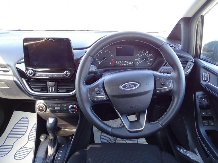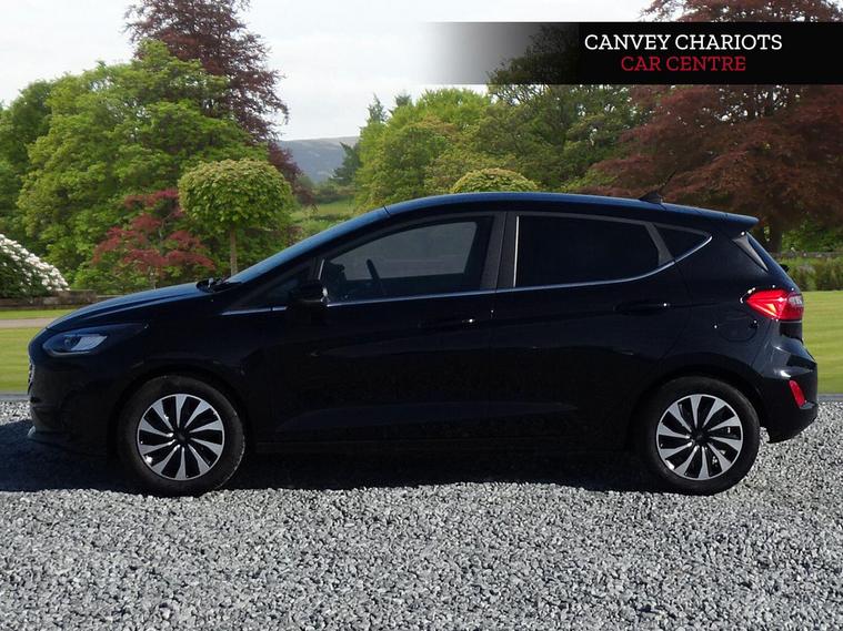 This 2023 Ford Fiesta T Titanium presents an exceptional opportunity with its remarkably low mileage of just 11, 000 miles, having been owned by only one careful keeper. This Euro 6 compliant model boasts a responsive 1.0L Petrol Hybrid engine, offering an efficient and engaging driving experience. Inside, you'll find the advanced SYNC 3 system complete with navigation, seamlessly integrating your Android Auto or Apple CarPlay for effortless connectivity.The driving experience is further enhanced by practical features such as rear parking distance sensors and automatic headlights with integrated LED daytime running lights and fog lights, ensuring confidence in all conditions. Manual air conditioning keeps the cabin comfortable, while the impressive 0-62mph acceleration in just 9.6 seconds highlights the Fiesta's spirited performance, setting it apart from other vehicles in its class..