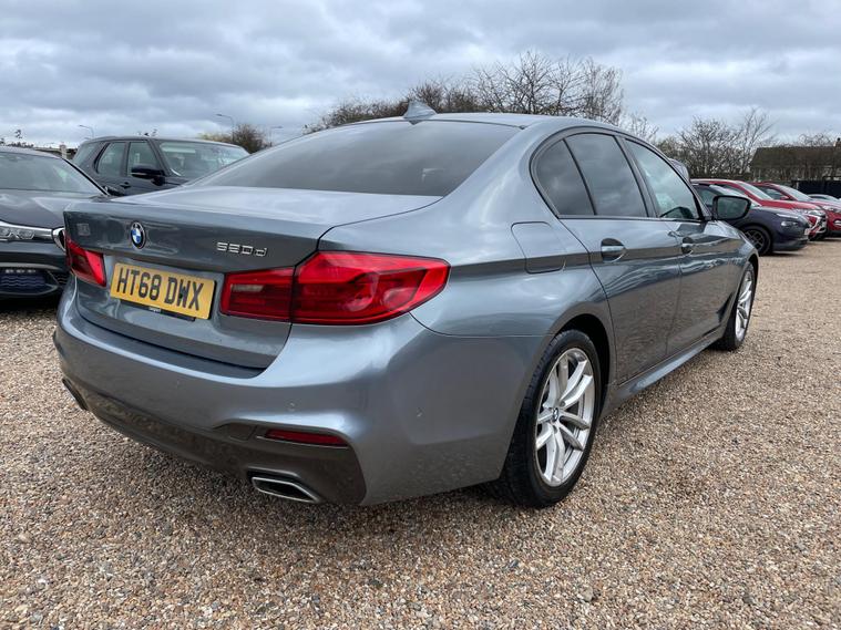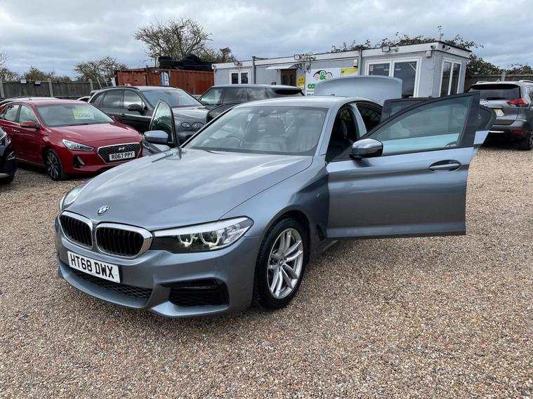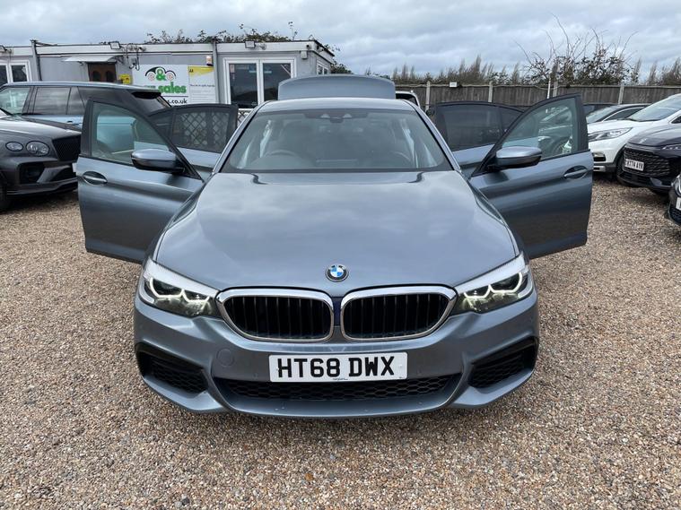 FREE 12 MONTHS AA BREAKDOWN COVER, ZERO DEPOSIT FINANCE AVAIL, 6 MONTHS NATIONWIDE WARRANTY, Full service history, 2 Keys avail, 2 Former keepers, Hpi clear, all previous Mot's avail. We are located in CANVEY ISLAND, ESSEX SS8 0QDThis 2018 BMW 5 Series 520d M Sport offers a compelling blend of performance and practicality. As a Euro 6 compliant vehicle, it features a responsive 2.0L diesel engine, ensuring an efficient drive. The M Sport trim enhances its sporty appeal, while the inclusion of front seat heating, LED headlights, and automatic rain sensing headlights provide comfort and convenience. Stay connected with the Bluetooth hands free system and USB audio interface, and enjoy the ease of automatic air conditioning.Experience impressive acceleration with a 0-62mph time of just 7.3 seconds, demonstrating its dynamic capability. This BMW 5 Series also boasts generous boot space, making it a versatile choice for everyday needs and longer journeys. These features collectively highlight how this particular 520d M Sport stands out, offering a refined and capable driving experience..