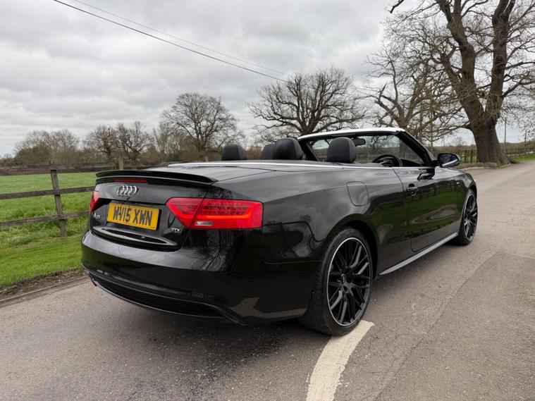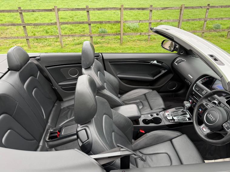 This 2015 Audi A5 Cabriolet TDI S line Special Edition Plus offers a refined driving experience with its powerful 2.0 litre diesel engine. As a Special Edition Plus model, it comes with the sought after S line trim, enhancing its sporty appeal. This particular example benefits from the Audi Parking System Plus, featuring both front and rear sensors to assist with manoeuvring, and a handy Bluetooth interface for seamless mobile phone connectivity.Enjoy the comfort of heated outer rear seats, perfect for cooler days, and appreciate the generous boot space, offering practicality for your journeys. The inclusion of Acoustic Parking System and Audi Parking System Plus further underscores the thoughtful design and advanced technology present in this A5 Cabriolet, setting it apart for ease of use and passenger comfort..