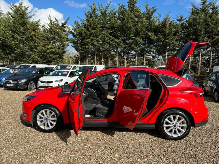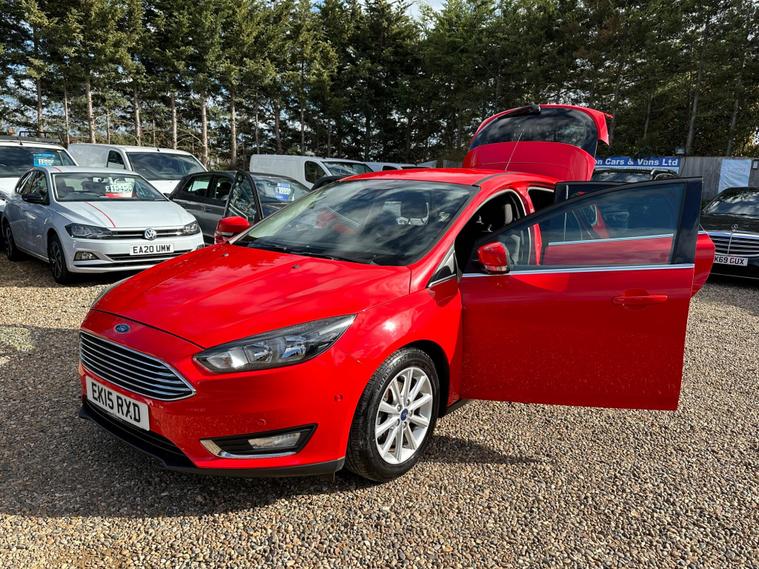 Boasting exceptionally low mileage for its age and a single owner from new, this 2015 Ford Focus T Titanium presents a superb ownership proposition. Powered by an efficient 1.0 litre petrol engine, this Euro 6 compliant model offers impressive fuel economy, achieving a remarkable 60 mpg. Its provenance is further assured with a clear vehicle history check, a full service history, and an MOT valid until March 2027. The last service was completed at 57, 000 miles on 26 February 2026, and the vehicle has covered a mere 56, 000 miles in total. Notable features include rear parking sensors with parking assistance, Bluetooth for audio streaming, automatic headlights, and electronic automatic temperature control for climate control.This Ford Focus Titanium stands out from similar vehicles due to its excellent fuel economy, highlighted by its 60 mpg rating, and its low CO2 emissions, making it an economical choice. The generous boot space offers practicality for everyday needs and longer journeys. With a comprehensive service history, a long MOT, and a clear vehicle history check, this Focus provides peace of mind, further enhanced by a 6 month warranty..