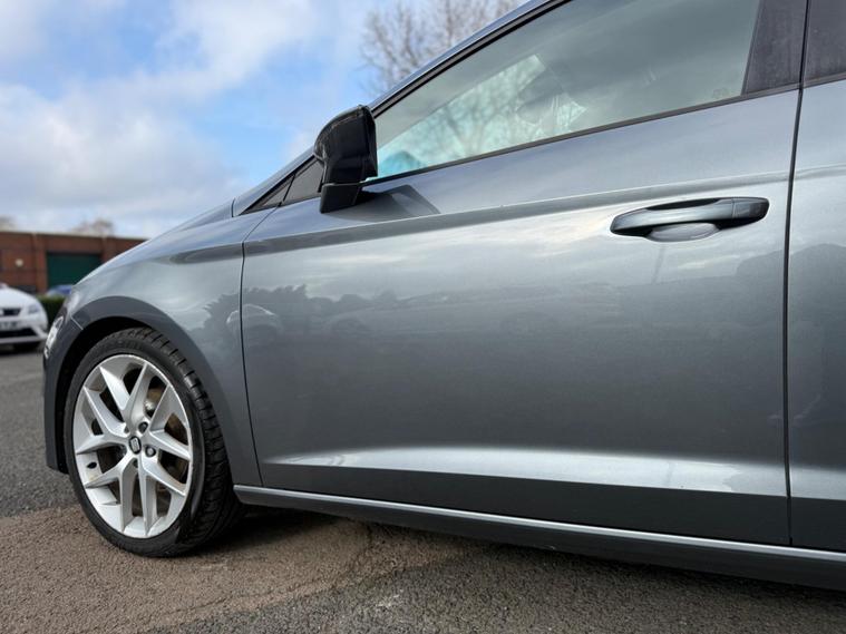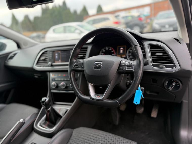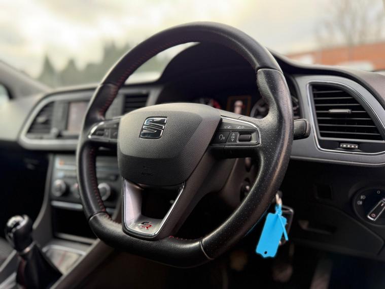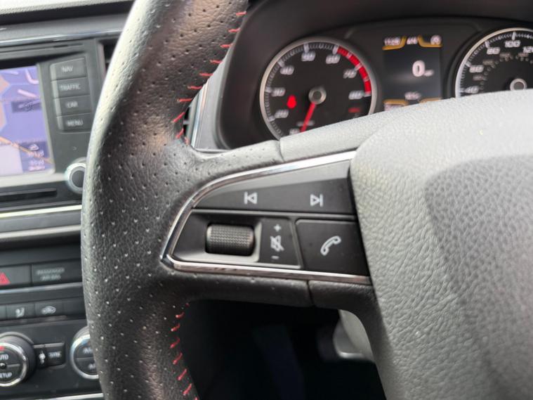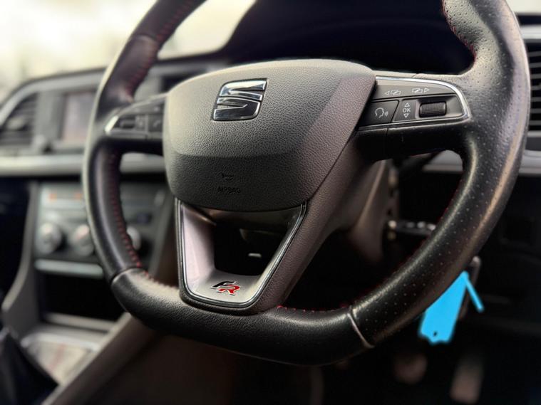 - Steering Wheel - Flat-Bottomed Perforated Leather with Red Stitching and FR Logo