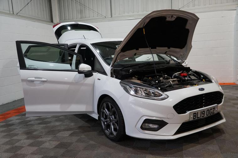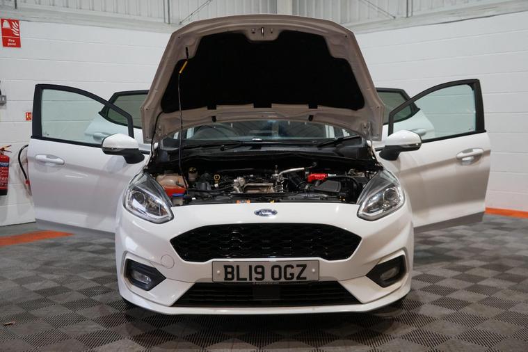 This Ford Fiesta 1.0T EcoBoost ST-Line Auto Euro 6 (s/s) 5dr combines sporty styling with everyday practicality and low running costs. Powered by Ford’s responsive 1.0T EcoBoost engine paired with a smooth automatic gearbox, it delivers an excellent balance of performance and efficiency, making it ideal for city driving and longer motorway journeys alike.Finished in ST-Line specification, this example benefits from rare and desirable factory features that enhance both appearance and usability.When new, this vehicle was specified with:● Cruise Control – Very rare option that reduces fatigue on longer journeys and makes motorway driving more relaxed● Ford Navigation System with SYNC 3 – Rare upgrade featuring Apple CarPlay, Android Auto and FordPass Connect with embedded modem, providing seamless smartphone integration, live connectivity and built-in navigation without relying solely on your phone● 18in Alloy Wheels – ST-Line 5-Spoke Rock Metallic Machined Finish – Very rare upgrade that enhances the car’s sporty stance and road presenceThe ST-Line styling brings sharper exterior design, sports suspension and a more dynamic driving feel, while the 5-door layout ensures practicality for passengers and shopping alike.Buyer Benefits:Ideal for first-time drivers or commuters seeking low insurance and strong fuel economy, while still enjoying sporty looks and modern tech. Cruise control and navigation make longer trips effortless, while smartphone connectivity keeps you legally connected on the move.Provenance:● HPI clear with report available● ULEZ compliantA rare automatic ST-Line with sought-after options that won’t stay around for long.All part exchange welcome, with fair and instant valuations offered.Distance purchase? No problem. We can provide a detailed walk-around video and offer competitive home delivery options..