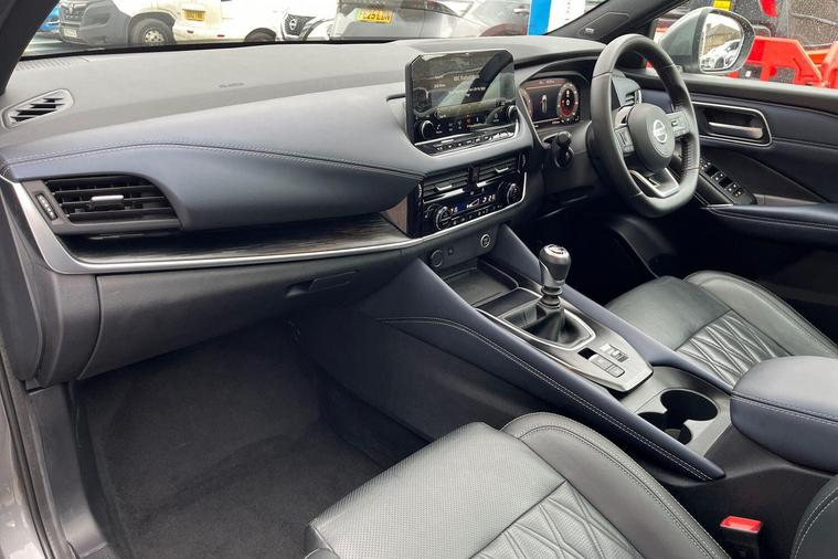 This 2021 Nissan Qashqai DIG-T Tekna+ is a Nissan manufacturer approved vehicle with exceptionally low mileage for its age, having covered just 20, 953 miles. It features a 1.3 litre petrol hybrid engine and meets Euro 6 emission standards. This Tekna+ model comes equipped with advanced safety features including Blind Spot Warning and Intelligent Blind Spot Intervention, both incorporating Blind Spot Assistance. For ease of parking, it also benefits from front and rear parking sensors, supported by front and rear parking assistance.The Qashqai DIG-T Tekna+ offers a refined driving experience, enhanced by its hybrid technology and the comprehensive safety suite. The inclusion of Blind Spot Warning and Intervention systems provides an added layer of awareness, distinguishing it from other vehicles in its class by actively assisting the driver. Similarly, the front and rear parking sensors and assistance make navigating tight spaces considerably simpler, highlighting its user friendly design and advanced technology..