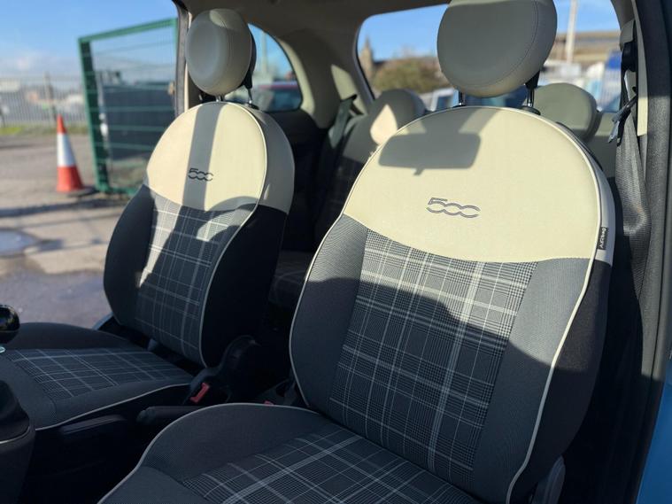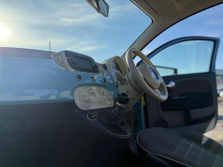 A beautifully presented Fiat 500 Lounge finished in a timeless design, combining iconic styling with excellent fuel economy and low running costs. This Euro 6 model is ULEZ compliant and makes an ideal city car, first car, or economical daily driver.Supplied with 2 keys and remote central locking for added convenience.Great Specification Includes:• 1.2 Petrol Engine – Smooth & Efficient (69 BHP)• Manual Gearbox• Start / Stop Technology• 15in Alloy Wheels• Rear Parking Sensors• Panoramic Glass Roof with Sunblind• LED Daytime Running Lights• Dualdrive Power Steering (City Mode)• Automatic Door Locking• Front Electric Windows• Electrically Adjustable Mirrors• Multifunction Steering Wheel with Audio & Voice Controls• 7in Touchscreen Radio• DAB Radio• Bluetooth Connectivity• USB & AUX Inputs• Rear Heated Windscreen• ISOFIX Child Seat Attachment PointsThe Lounge model is one of the most desirable trims, offering the panoramic roof and upgraded infotainment system which greatly enhance the driving experience.A fantastic example of a stylish, economical, and highly sought-after hatchback..