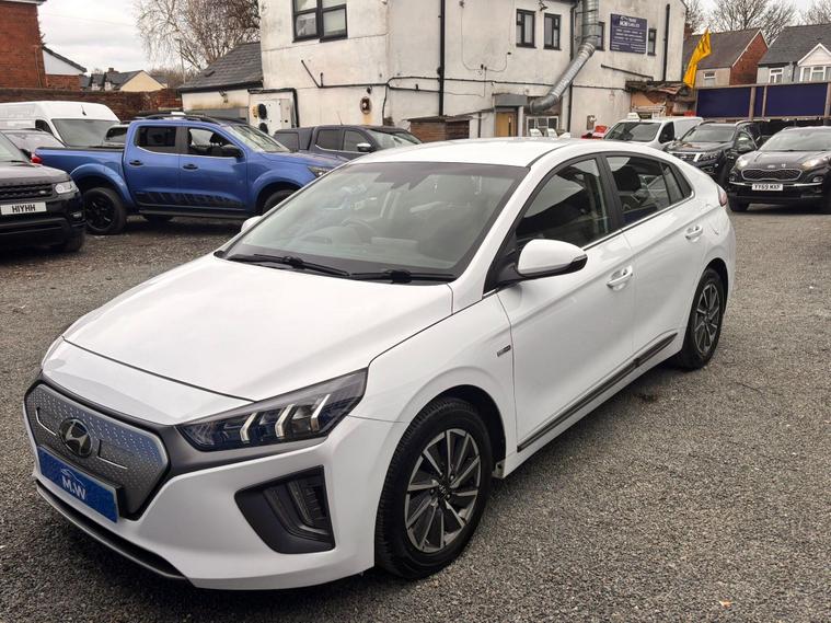 This 2021 Hyundai IONIQ Premium Electric boasts a full service history and a clear vehicle history check, ensuring peace of mind for its next owner. With only one previous owner, this well maintained example has covered 58, 800 miles and received its last service on 25th February 2026. The 42 kWh battery offers a maximum range of 184 miles when new, and can be fully charged at home using a 7kW charger in approximately 6 hours and 5 minutes. For faster top ups, public charging can take the battery from empty to 80% in just 54 minutes.This IONIQ Premium comes equipped with a range of desirable features designed to enhance your driving experience. Stay comfortable on colder days with the heated steering wheel, and keep your devices powered up with the convenient wireless phone charging pad. Enjoy seamless connectivity through Bluetooth, and navigate tight spots with ease thanks to the rear camera and guidance system. Automatic headlights with a dusk sensor ensure optimal visibility, switching on when needed. Furthermore, the generous boot space provides ample room for all your luggage and shopping..