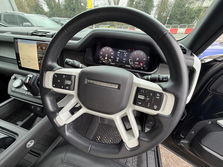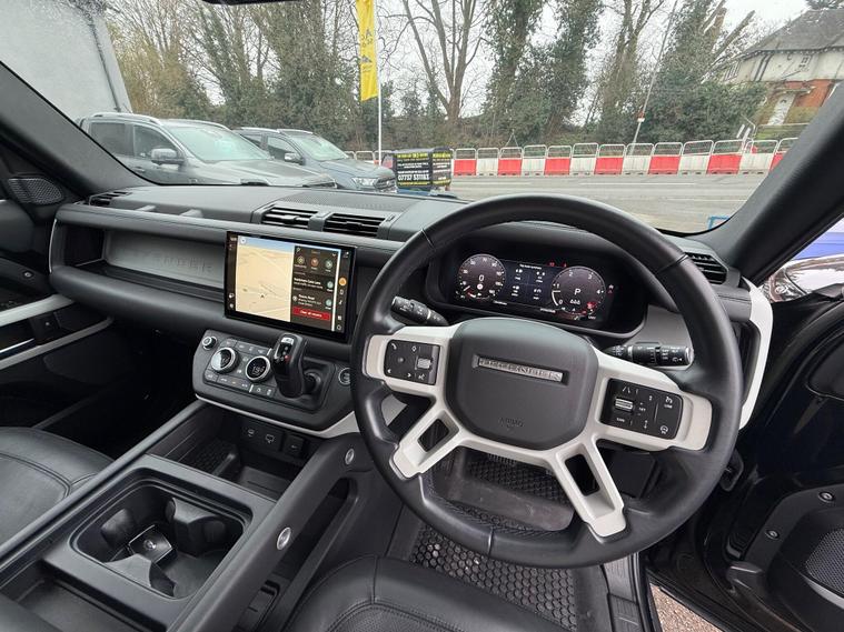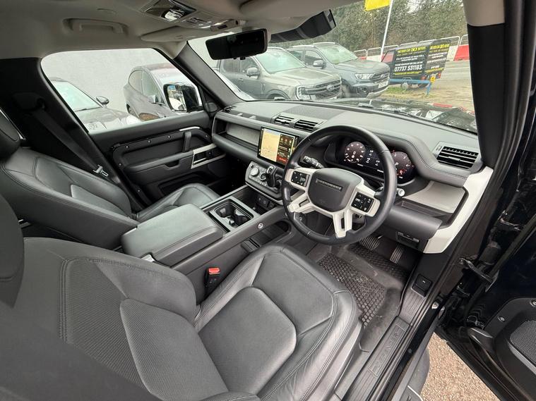 2023 Land Rover Defender 110 3.0 D250 MHEV HSE Auto 4WD Euro 6 (s/s) 5drOnly 24, 886 miles | 1 Owner | Two Keys with Original Key BoxA superb example of the Land Rover Defender 110 HSE finished with the powerful and refined 3.0 D250 mild-hybrid diesel engine paired with the smooth automatic gearbox and legendary 4WD capability.Factory options include Santorini Black metallic paint, panoramic sliding glass roof, Windsor perforated leather interior with extended leather upgrade, 20'' Pegasus gloss black alloy wheels, Noble Chrome exterior pack, privacy glass, black roof rails, centre console with fridge, wireless device charging with booster, Meridian 600W premium sound system, 3D surround camera, heated steering wheel, Comfort & Convenience Pack and Secure Tracker.Specification also includes heated front and rear seats, adaptive cruise control, blind spot assist, lane keep assist, Apple CarPlay & Android Auto, Pivi Pro infotainment with satellite navigation, keyless entry and push button start, electric memory seats, LED headlights, front and rear parking sensors, dual zone climate control and full digital driver display.Service HistoryPDI in 2023 at Land Rover11/12/2024 at 15, 335 milesServicing on these is due every 21, 000 miles or 24 months, therefore the next service is not due until December 2026 or in over 10, 000 miles.MOT carried out at main dealer Ford — not due until 16/02/2027.A 3 month comprehensive warranty is included, with the option to extend for up to two years. Part exchange is welcome for any value and our Buying Department can provide prompt valuations. Nationwide delivery is available at a cost upon request. You can reserve this vehicle today with a £250 fully refundable deposit.We have over 150 vehicles in stock to choose from. Established in 2021, we pride ourselves on our excellent reviews and customer service — please see our 200+ positive reviews. All our retail vehicles are fully health-checked and prepared to the highest standard..