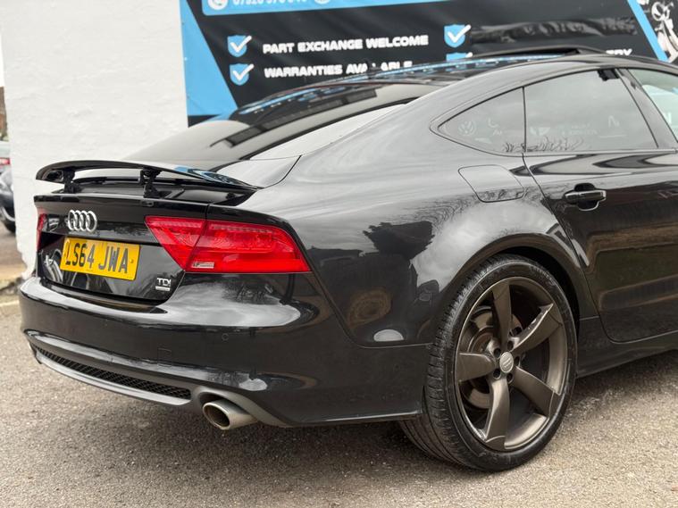 This 2014 Audi A7 TDI V6 Black Edition boasts a clear vehicle history, offering peace of mind for its next owner. This striking model features a powerful 3.0 litre diesel engine paired with a smooth four wheel drive system, ensuring confident performance in all conditions. The Black Edition trim adds a touch of sophisticated style, while practical features like front parking sensors and automatic activation bi-xenon headlights enhance the driving experience. Inside, you'll find electrically adjustable front seats with a memory function for the driver, ensuring comfort and convenience on every journey.The Audi A7 TDI V6 Black Edition truly stands out with its impressive acceleration, reaching 0-62mph in just 6.3 seconds, a testament to its potent engine and refined engineering. This performance, combined with its spacious boot, makes it a versatile choice for both daily commutes and longer trips. The inclusion of features such as automatic headlights and driver's seat memory further elevates its appeal, demonstrating a level of thoughtful design and advanced technology that sets it apart from other vehicles in its class..