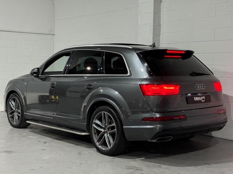 Boasting exceptionally low mileage for its age, this 2015 Audi Q7 TDI V6 S line presents a remarkable opportunity. This four wheel drive, seven seat SUV is powered by a 3.0 litre Euro 6 diesel engine, offering a compelling blend of performance and efficiency. Its clear vehicle history check provides peace of mind, while the S line trim ensures a premium feel throughout. Notable features include a panoramic glass sunroof, 21 inch alloy wheels, and the convenience of Audi Phone Box with wireless phone charging.The Q7 TDI V6 S line excels with its impressive 0-62mph acceleration in just 6.5 seconds, demonstrating its dynamic capability. This performance, combined with a substantial towing weight of 2800 kg, indicates its superiority for those needing both speed and utility. Furthermore, its placement in a low insurance group highlights its cost effectiveness, making this Audi Q7 a well rounded choice for discerning drivers..