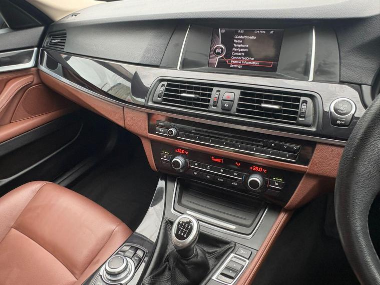 Boasting exceptionally low mileage for its age, this 2014 BMW 5 Series 520d SE presents a compelling proposition. With only two previous owners and a clear vehicle history check, this Euro 6 compliant diesel model has covered just 57, 580 miles. The SE trim level comes equipped with desirable features such as 18 inch Light V Spoke Style 328 alloy wheels, enhanced Bluetooth telephone preparation with USB audio interface, automatic activation headlights, and heated front seats for added comfort.This BMW 5 Series offers a refined driving experience, highlighted by its brisk 0-62mph acceleration in just 8.3 seconds, demonstrating its capable 2.0 litre diesel engine. The generous boot space ensures practicality for everyday needs and longer journeys. These factors, combined with its low mileage and limited ownership, set this particular 520d SE apart from other vehicles of its kind..