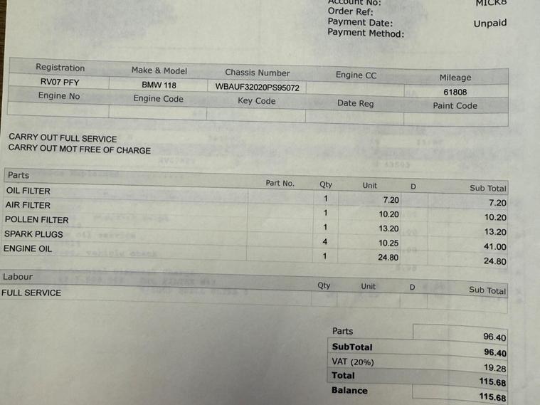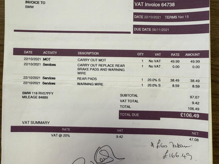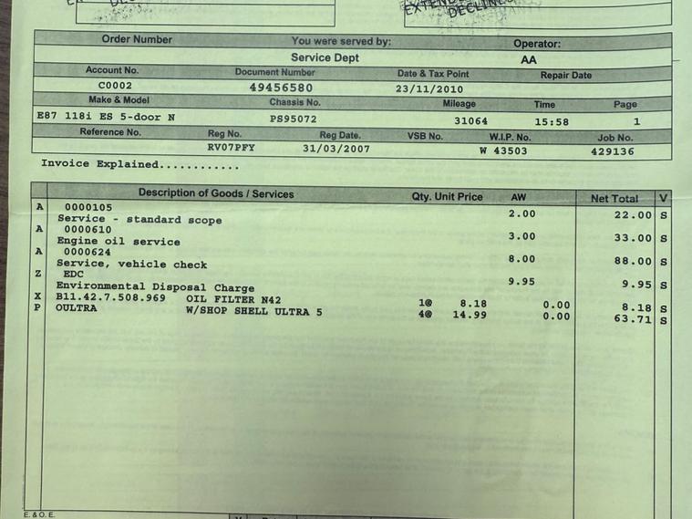 - Service History (8 stamps/invoices)