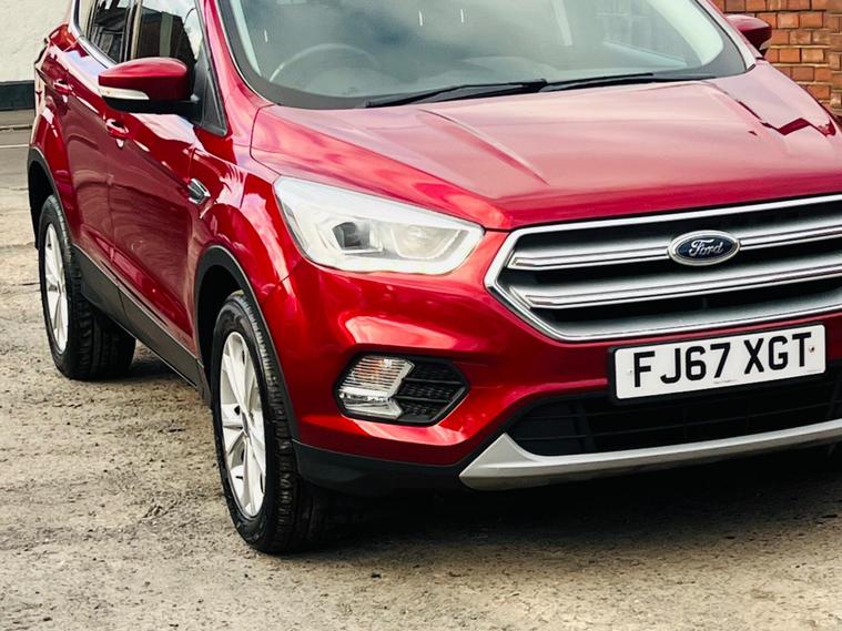 SAT NAVIGATION EURO 6 CAR HALF LEATHER PARKING SENSOR MOT 26/9/2026/ JUST ARRIVED PART EXCHANGE AND DELIVER AVAILABLE LOW RATE FINANCE AVAILABLE 0 DEPOSIT FINANCE AVAILABLE This 2017 Ford Kuga TDCi Titanium offers an exceptional blend of style and practicality, making it a superb choice for any driver. Powered by an efficient 1.5L Diesel engine and meeting Euro 6 emissions standards, this model is designed for modern motoring. Inside, you'll appreciate the comfort of DEATC dual zone electronic automatic temperature control and the convenience of keyless entry and opening. The Titanium trim level ensures a well equipped experience, featuring automatic halogen headlights with distinctive LED daytime running lights, rear parking sensors for easier manoeuvring, and the integrated Ford DAB Navigation System with Ford SYNC3, which includes Bluetooth connectivity for seamless phone integration.This Ford Kuga stands out with its impressive fuel economy, achieving a remarkable 59 miles per gallon, which indicates it is more economical than many other similar vehicles. Furthermore, its low CO2 emissions highlight its environmental consideration, and its position in a low insurance group suggests that running costs will be kept to a minimum, making it a financially sensible option compared to other vehicles in its class..