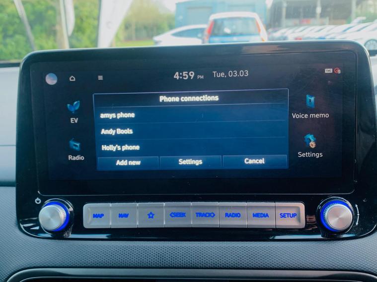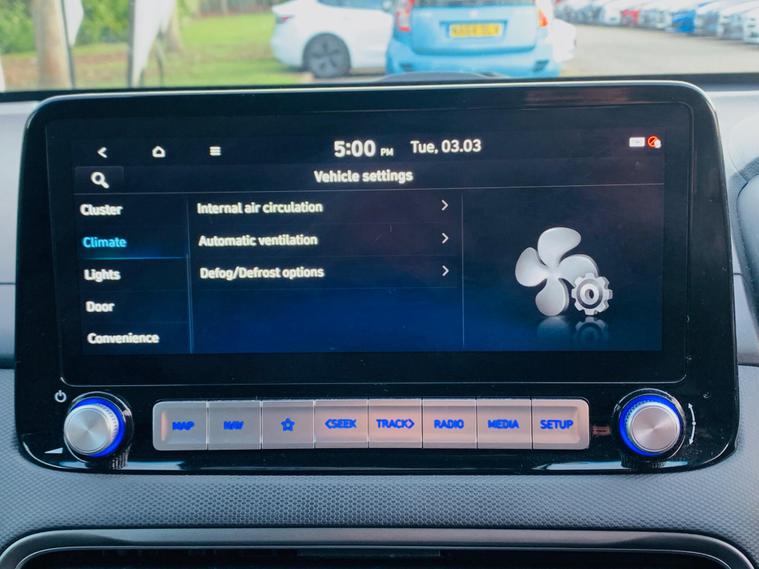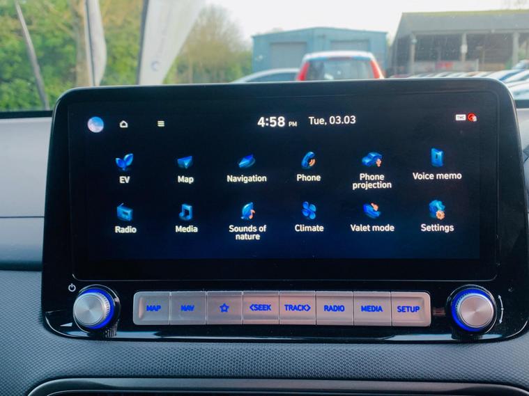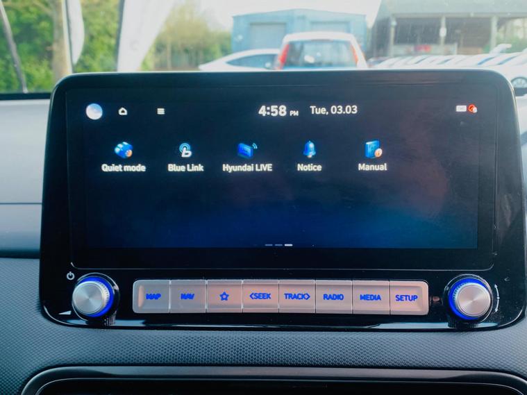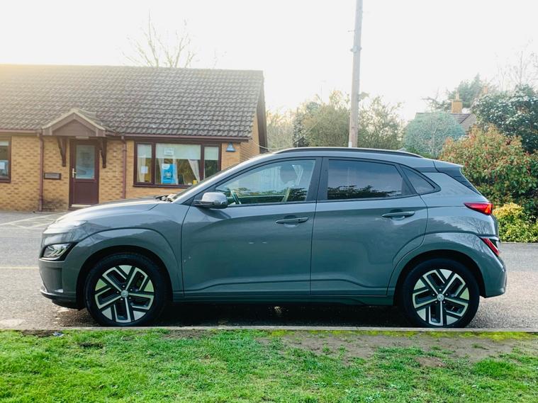 BATTERY HEALTH A RATED BY AVILOO MORE THAN 95%, This 2021 Hyundai KONA Premium Electric boasts a clear vehicle history, offering peace of mind for its next owner. This well appointed model features a substantial 68 kWh battery, providing an impressive maximum range of 300 miles when new. Inside, you'll find a comfortable and convenient cabin, equipped with heated front seats and a heated steering wheel for those colder journeys. For enhanced safety and ease of use, this KONA includes Blind Spot Collision Avoidance Assist and a rear camera with guidance system for parking. Connectivity is also a breeze with Apple CarPlay integration, allowing seamless access to your smartphone. The Hyundai KONA Premium Electric stands out with its exceptional electric range, offering up to 300 miles from a full charge, which is a significant advantage for longer trips and daily commutes. Charging is convenient, with a full charge at home taking approximately 10 hours and 16 minutes using a 7kW charger, and a rapid charge to 80% achievable in just 53 minutes at a public charging station. These charging times and the extensive range demonstrate how this KONA offers a superior electric driving experience compared to many other vehicles in its class..
