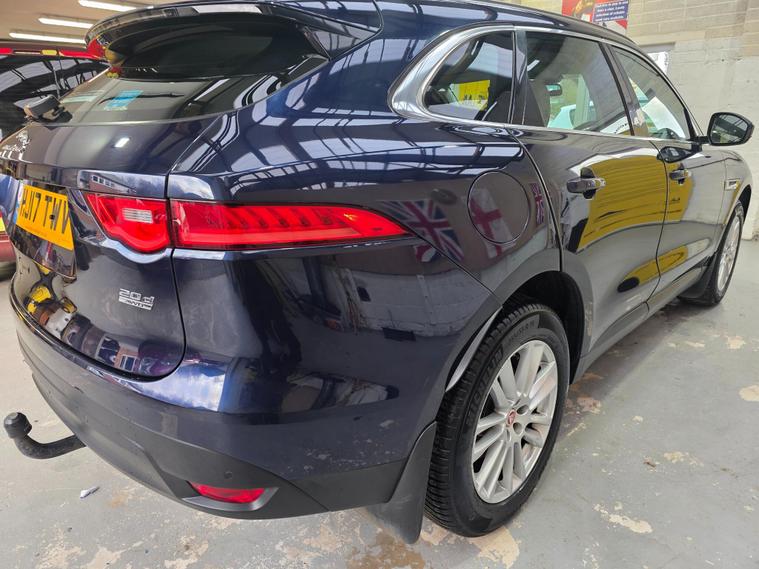 With an exceptionally low mileage for its age, this 2017 Jaguar F-PACE D180 Portfolio represents a superb ownership opportunity. This four wheel drive model boasts a 2.0 litre diesel engine, meeting Euro 6 emissions standards, and has been meticulously maintained with a full service history, most recently serviced at 52, 900 miles on 24th February 2026. The vehicle is in excellent condition, with an MOT valid until February 2027 and a clear vehicle history check, having had only one owner since new. Notable features include a sliding panoramic roof with an opening sunroof, a detachable tow bar, xenon headlights with LED signature lighting, and a rear view camera for enhanced parking assistance. Keyless entry adds to the convenience of this sophisticated SUV.The Jaguar F-PACE D180 Portfolio offers a compelling blend of performance and practicality. Its acceleration from 0 to 60mph in just 8.4 seconds demonstrates its responsive power, while the impressive 2400 kg towing weight makes it a capable companion for various needs. The generous boot space further enhances its versatility, providing ample room for luggage or equipment. These attributes, combined with its single owner provenance and comprehensive service record, position this F-PACE as a standout choice compared to other vehicles in its class..