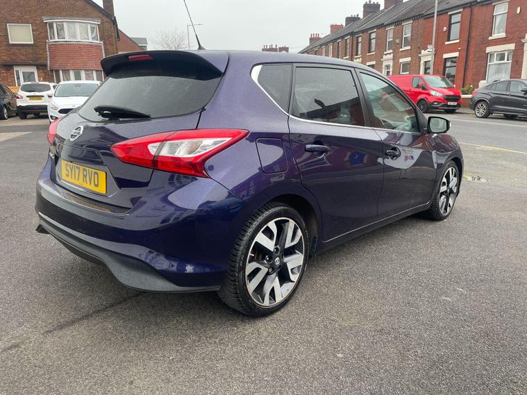 FULL SERVICE HISTORY, TWO OWNERS FROM NEW, FULL BLACK HEATED LEATHER SEATS, SAT NAV, TWO KEYS, REVERSING CAMERA, 12 MONTHS MOT, COMPREHENSIVE WARRANTY/ AA BREAKDOWN COVER* HPI CHECKED, LOW RATE FINANCE FROM 4.99%, FINANCE TODAY, SUBJECT TO STATUS, PRE ARRANGE YOUR FINANCE WITH US - APPLY FINANCE INSTANTLY THROUGH OUR WEBSITE - VIDEO AVAILABLE ON REQUEST, WE OFFER AA DRIVEAWAY WITH 5 DAYS INSURANCE, PLEASE VISIT OUR WEBSITE ON dealer's website FOR MORE INFO OR OUT OF HOURS VIEWING. CALL US ON 01772581529, This 2017 Nissan Pulsar dCi Tekna offers excellent value with a clear vehicle history and only two previous owners. It is powered by an efficient 1.5 litre Euro 6 diesel engine, known for its impressive fuel economy of up to 79 miles per gallon. Inside, you'll find a comfortable cabin featuring dual zone climate control air conditioning and front heated seats for those colder journeys. The Tekna trim also boasts Intelligent Key with start push button for keyless entry and starting, alongside Smart Vision technology which includes Blind Spot Assistance and a 360 degree camera for enhanced parking awareness. Bluetooth telephone integration allows for seamless connectivity on the go.This Nissan Pulsar stands out with its low CO2 emissions, contributing to a lower tax bracket, and its low insurance group rating, making it an economical choice for many drivers. The generous boot space ensures you have plenty of room for shopping or luggage. These highlights demonstrate how this particular Pulsar offers a superior ownership experience compared to other vehicles in its class, combining practicality, advanced technology, and cost effectiveness..