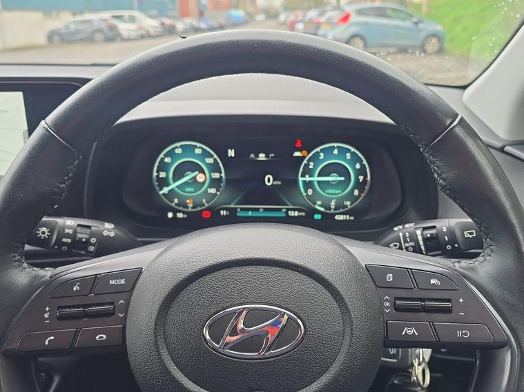 This 2022 Hyundai BAYON T-GDi Premium is a superb example, having been owned by just one careful keeper since new. This stylish compact SUV boasts a 1.0 litre petrol hybrid engine, meeting Euro 6 emission standards. Inside, you'll find a host of premium features designed for comfort and convenience, including climate control with an automatic de fog system for the front windscreen, heated front seats, and a heated steering wheel for those colder mornings. The Premium trim also benefits from LED headlights for improved visibility and Bluetooth connectivity with voice recognition, allowing for seamless integration of your devices.The Hyundai BAYON T-GDi Premium offers an impressive fuel economy of 53 miles per gallon, a highlight that demonstrates its efficiency compared to similar vehicles. Furthermore, its low CO2 emissions contribute to a more environmentally conscious driving experience. This well appointed and economical vehicle presents a compelling choice for anyone seeking a modern and practical compact SUV..