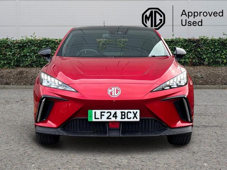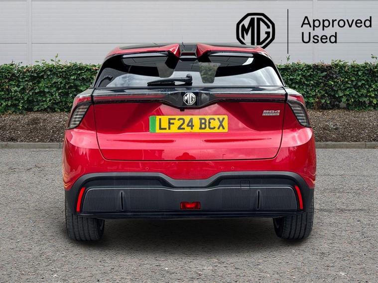 This 2024 MG MG4 Trophy Extended Range electric car boasts exceptionally low mileage for its age, having covered just 9200 miles. As an electric vehicle, it offers a substantial battery capacity of 77 kWh, providing a maximum range of 329 miles when new. This model comes equipped with desirable features such as heated front seats and a heated steering wheel for enhanced comfort, alongside climate control to maintain the perfect cabin temperature. For seamless connectivity, it includes Android Auto, and parking is made effortless with a 360 degree parking camera system.The MG4 Trophy Extended Range is designed to impress, with a remarkable 0-60mph acceleration time of just 6.1 seconds, demonstrating its dynamic performance. This electric car also offers a generous boot space, making it practical for everyday use and longer journeys. Charging is convenient, with a full charge at home taking approximately 11 hours and 26 minutes using a 7kW charger, while rapid public charging can take its battery from empty to 80% in as little as 44 minutes. These capabilities highlight how this MG4 offers a superior driving and ownership experience compared to similar vehicles..