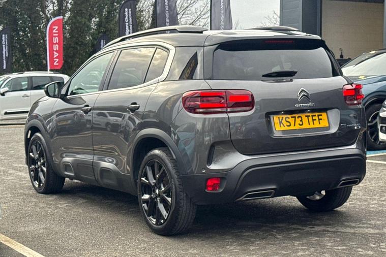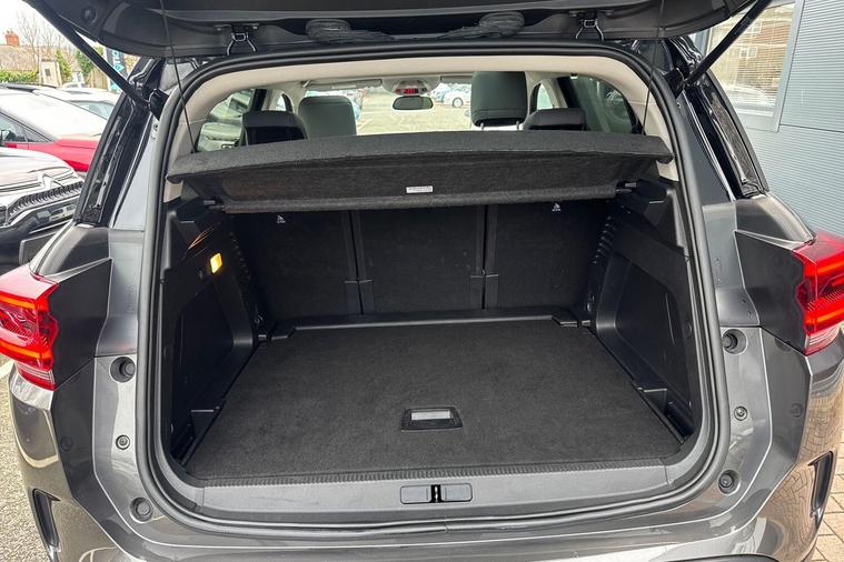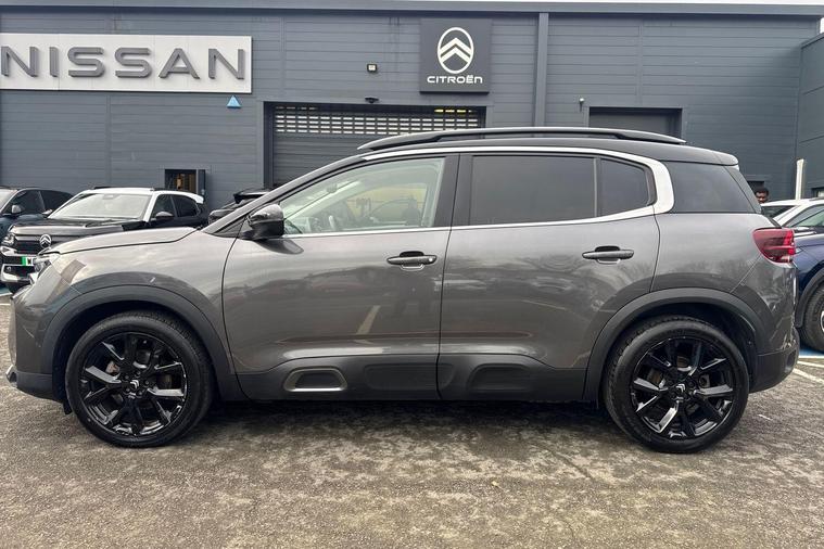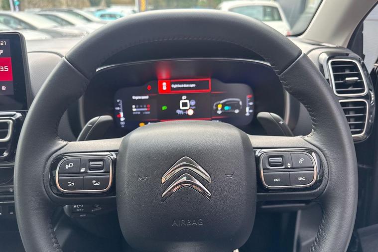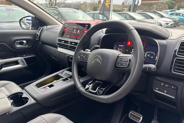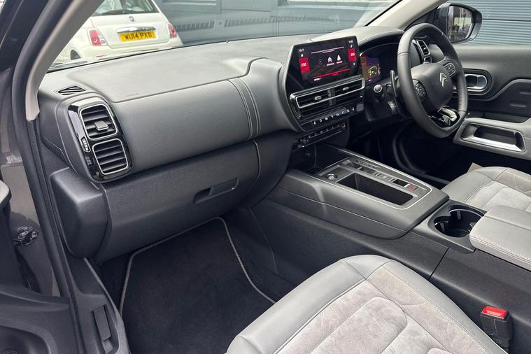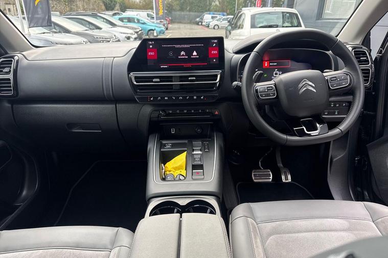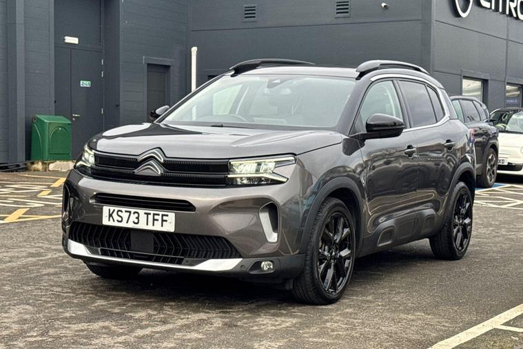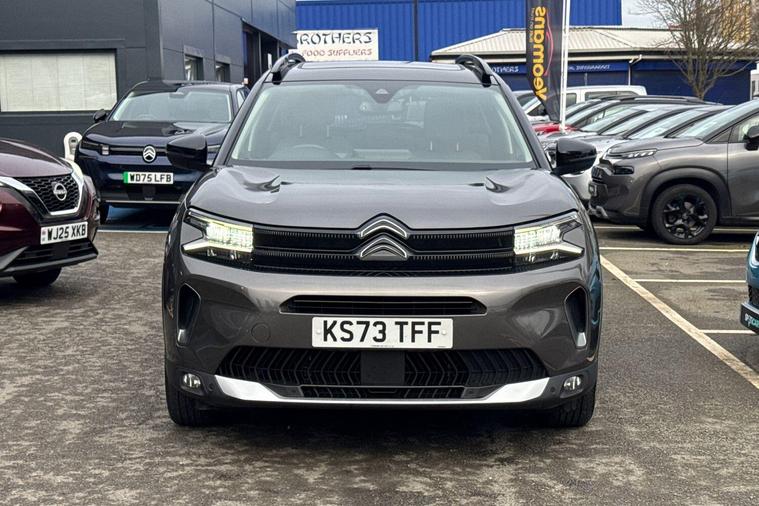 This 2023 Citroen C5 Aircross e-series is a Citroen manufacturer approved vehicle, offering peace of mind with a 12 month warranty and a full service history. Under the bonnet, you'll find an efficient 1.2 litre petrol hybrid engine, meeting Euro 6 emission standards. Inside, the e-series trim provides a comfortable and connected experience, featuring heated seats as part of the e-series interior ambience. The cabin is kept at your ideal temperature with automatic dual zone climate control, and the 10 inch touchscreen user interface includes Bluetooth connectivity for seamless audio and calls. Driving is made easier with an acoustic laminated windscreen that incorporates rain and brightness sensors, automatically activating the headlights.The Citroen C5 Aircross e-series stands out with its impressive fuel economy, achieving a highlight of 53 miles per gallon, which is better than many comparable vehicles. This model also benefits from a low insurance group, indicating lower running costs. For practicality, you will appreciate the large boot space, offering ample room for luggage or shopping. The LED headlights, complete with LED daytime running lights and a distinctive visual signature, enhance both visibility and the vehicle's modern appearance..