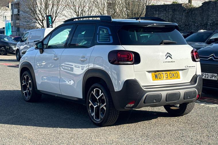 This 2023 Citroen C3 Aircross Shine Plus is a well maintained example, offering a blend of style and practicality. Powered by an efficient 1.2 litre petrol engine, this Euro 6 compliant model delivers a responsive drive with a 0-62mph acceleration time of just 9.2 seconds. The Shine Plus trim level comes equipped with a suite of advanced features designed to enhance your driving experience, including Citroen Connected Nav with 3D Navigation, which seamlessly integrates Android Auto and Apple CarPlay, alongside Bluetooth connectivity.Further enhancing convenience and safety, this C3 Aircross includes front parking sensors with parking assistance, a Top Rear Vision reversing camera for effortless manoeuvring, and automatic air conditioning for optimal cabin comfort. The LED headlights provide excellent visibility while contributing to the vehicle's efficiency. With an impressive fuel economy of 49 mpg and a low insurance group rating, this Citroen C3 Aircross Shine Plus represents excellent value, demonstrating its superiority over comparable vehicles in its class..