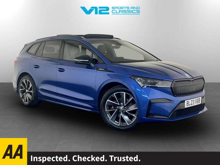 Introducing the Skoda Enyaq 82kWh 80 SportLine SUV 5dr Electric Auto, a stunning vehicle that combines style, performance, and eco-friendliness in one sleek package. Finished in a striking Blue colour, this Enyaq is sure to turn heads wherever you go. The SportLine trim adds a touch of sporty sophistication to the design, making it stand out from the crowd.With a powerful DC125kW electric motor delivering 204 ps of smooth, responsive power, the Skoda Enyaq offers an exhilarating driving experience with zero emissions. Say goodbye to petrol stations and hello to a more sustainable way of driving.Don't miss your chance to own this exceptional Skoda Enyaq. Contact us today to arrange a test drive and experience the future of driving for yourself. For peace of mind this vehicle has completed a multi point AA dealer's website finance is also available.We are open 7 days a week and have more than 1500 cars to choose from.All our Euro 4 Petrol and Euro 6 Diesel vehicles meet the ULEZ standard.Vehicle specification can be found below. From time to time vehicles have manufacturer recalls notified. Please read our recall policy on our website for further information. Please be advised that the advertised electric vehicle (EV) listings may experience battery degradation over time, resulting in reduced performance and range compared to the original specifications. Factors such as usage patterns, environmental conditions, and charging practices can contribute to this degradation. While we strive to provide accurate information, the actual battery health and performance of each EV may vary. Customers are encouraged to conduct thorough research and consider the potential impact of battery degradation before making a purchase decision. We recommend consulting with a qualified technician or conducting a battery health inspection for further assessment. This vehicle comes with an AVILOO Battery Health Certificate - the global standard for EV battery testing. Full independent analysis confirms excellent battery condition with detailed State of Health assessment, cell-level checks, and accurate range data. Certificate included with purchase for your complete peace of mind and future resale value.Disclaimer: While every effort is made to ensure the accuracy of vehicle specifications, features, and descriptions, errors and omissions may occur. Specifications and equipment may vary and may not be present on the vehicle at the point of sale. Buyers are advised to confirm all details with the seller before completing a purchase..