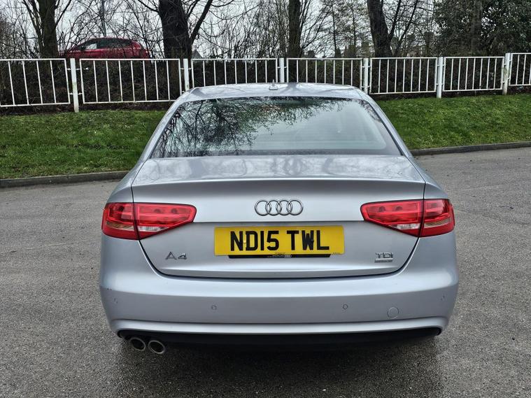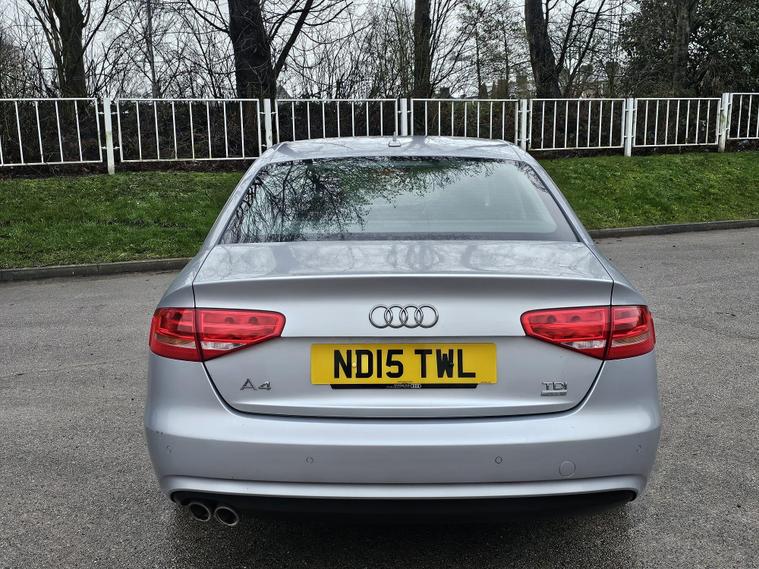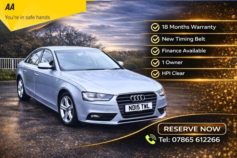This Audi A4 TDI SE Technik from 2015 boasts a remarkable full service history, with its last service completed on 2026-02-15 at 115, 000 miles. TIMING BELT CHANGED IN FEB 2026. and comes with a clear vehicle history check. This well maintained example, with only one owner from new, features a 2.0 litre Euro 6 diesel engine and is presented in the desirable SE Technik trim. Inside, you will find the Audi Exclusive Leather Package 1, featuring luxurious Valcona Leather, The Audi Parking System Advanced, including front sensors and a rear, Audi Parking System Plus with front and rear sensors, makes manoeuvring effortless. Automatic headlights, activated by a light sensor, add to the convenience.This Audi A4 offers excellent value, highlighted by its impressive fuel economy of 67 mpg, which is significantly better than many other vehicles in its class. Furthermore, its low CO2 emissions and low insurance group rating indicate that running costs are kept to a minimum, making it an economical choice. A 12 month MOT will be provided on purchase, and the vehicle is supplied with an 18 month warranty for your peace of mind..