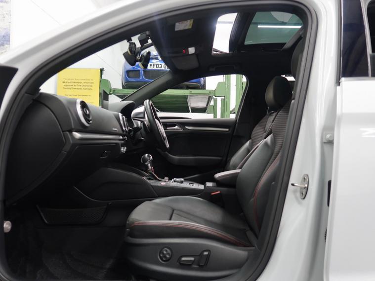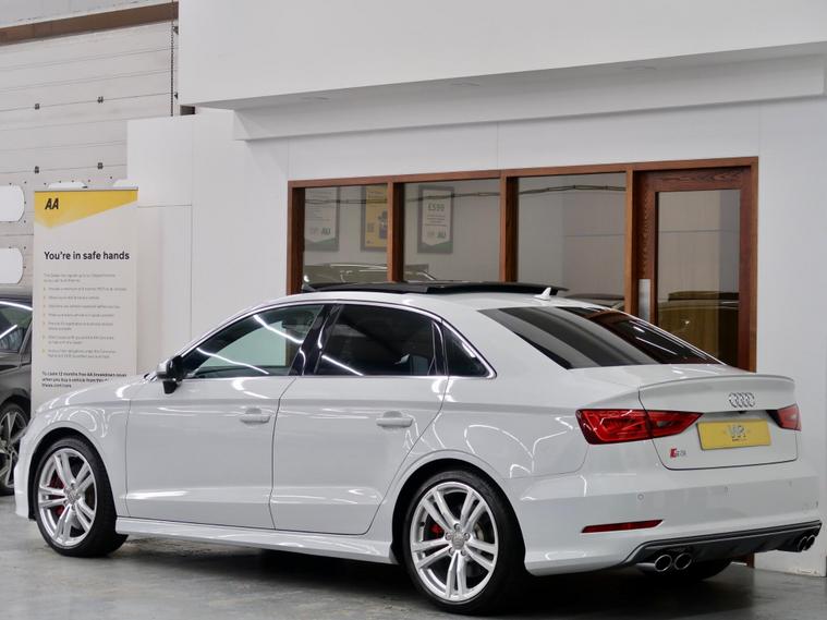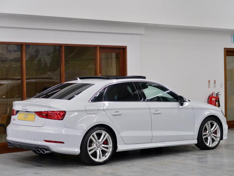He We have A 2015/ 65 Reg, Audi S3 2.0 TFSI S Tronic QUATTRO Euro 6 4dr (Nav), Japan Import, Presented In Stunning White With Contrasting Half Leather / Cloth Sports Interior complemented by Red stitching. This Car Is in Excellent condition and Drives Superb. GREAT SPEC INCLUDED: SAT NAV + PAN ROOF + ADAPTIVE CRUISE CONTROL + FRONT AND REAR PARKING SENSORS + REVERSE CAMERA + BANG AND OLUFSEN SOUND SYSTEM + KEYLESS ENTRY + PUSH START + ELECTRIC SEATS + HALF LEATHER INTERIOR WITH RED STITCHING + ULEZ COMPLIANT + AUTOMATIC XENONS + LED DAYTIME RUNNING HEADLIGHTS + LED REAR LIGHTS + ELECTRIC FOLDING / HEATED DOOR MIRRORS + DUAL CLIMATE + AIR CON + MULTI FUNCTION LEATHER STEERING WHEEL + SPORTS PADDLE SHIFT GEARBOX.About Us We are a family-run business established since 2000, Our reputation is built on trust, quality, and customer satisfaction. We are proud to be recognised as an AutoTrader Highly Rated Dealer for both 2024 and 2025, and finalists in the AutoTrader Retailer Awards 2025, reflecting our continued commitment to exceptional service and customer care. Buy with complete confidence and peace of mind please read our verified customer reviews.