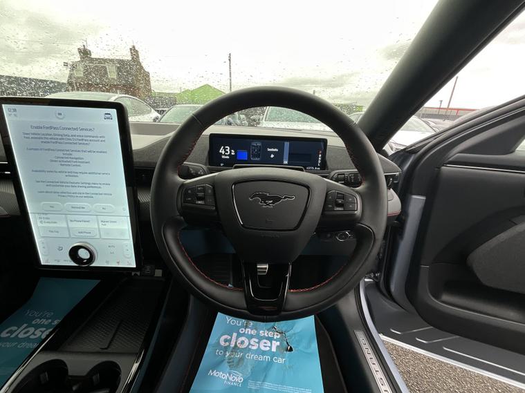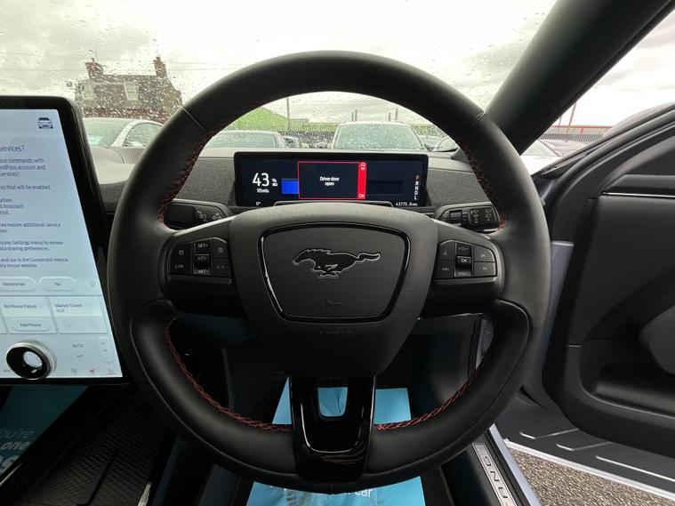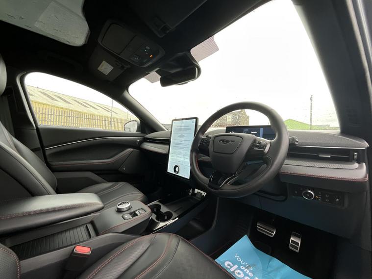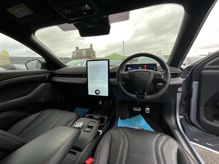 This 2024 Ford Mustang Mach E Extended Range boasts an MOT valid until January 2027, offering peace of mind for the coming years. This electric vehicle features a substantial 99 kWh battery, providing a maximum range of 335 miles when new. Charging at home using a 7kW charger will take approximately 14 hours and 36 minutes for a full charge, while rapid public charging can take the battery from empty to 80% in just 51 minutes.The Mustang Mach E Extended Range is equipped with Four Wheel Drive for confident handling in various conditions. Its impressive acceleration is highlighted by a 0-62mph time of just 5.8 seconds, demonstrating its responsive performance. These figures indicate that this particular model offers a superior driving experience compared to many other vehicles in its class..