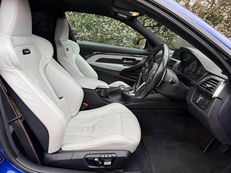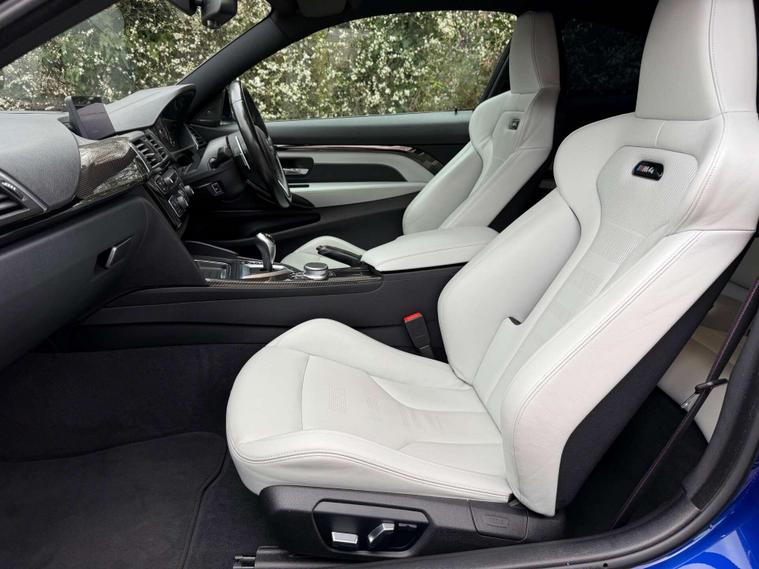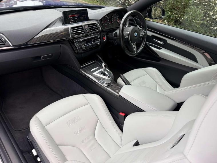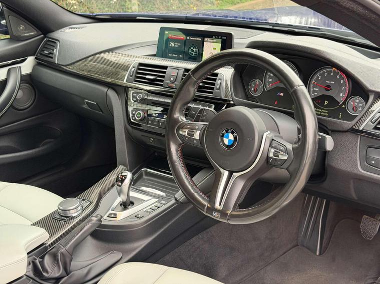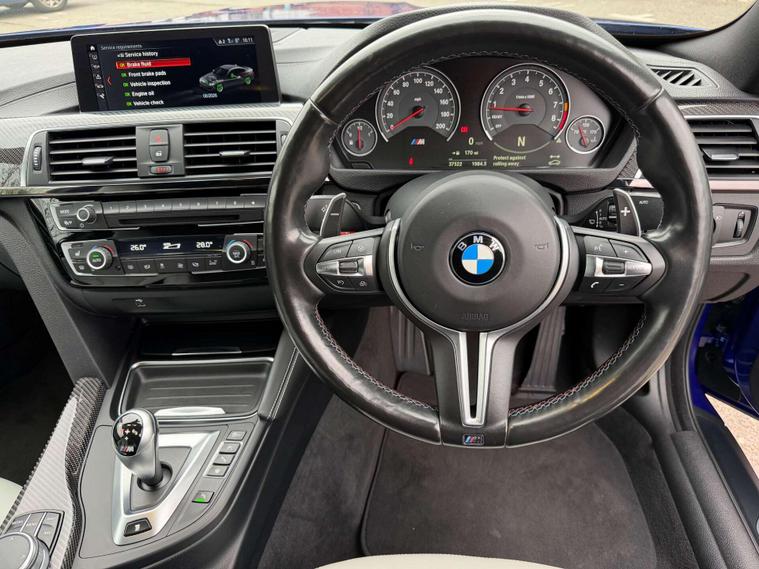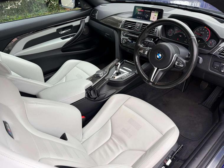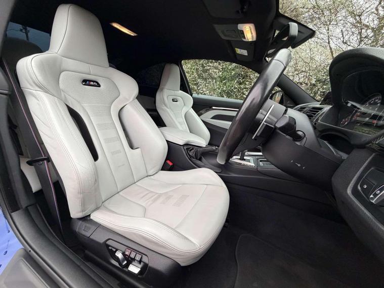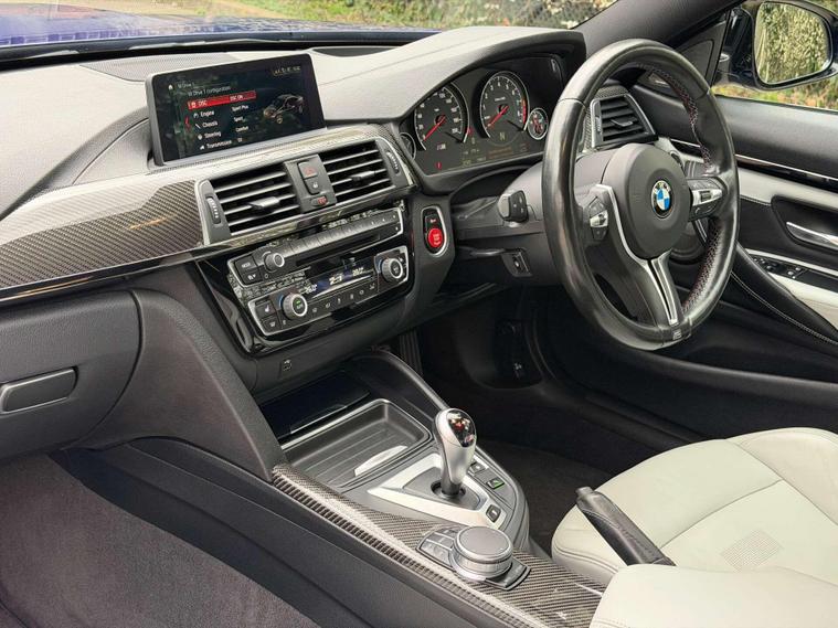 Presented in the stunning San Marino Blue, this BMW M4 Competition combines aggressive performance with everyday usability, finished with a carefully selected factory specification that perfectly complements the car’s sharp, motorsport-inspired character. Sitting on the iconic 20” M Light Star-Spoke Style 666M forged alloy wheels in Black, this example delivers the unmistakable Competition look with real road presence.Inside, the cabin is finished in Extended Merino Leather in Silverstone, creating a premium, contrasting interior that feels both sporty and luxurious. The Carbon Fibre interior trim with Black Chrome finisher adds a purposeful, driver-focused feel, while the M Head-Up Display keeps key performance data directly in your line of sight for a true M driving experience.This car is equipped with sought-after comfort and technology features including a Harman Kardon loudspeaker system for exceptional audio quality, Reversing Assist Camera for easy manoeuvring, Heated Steering Wheel for year-round comfort, and Sun Protection Glazing completing the sleek exterior finish.The M4 Competition remains one of the most engaging performance coupes in its class — combining sharp handling, everyday practicality and the unmistakable sound and performance of BMW M engineering. A well-specified example in one of the best colour combinations available.Key Features:• San Marino Blue• 20” 666M Forged Black Alloys• Extended Merino Leather – Silverstone• Carbon Fibre Interior Trim with Black Chrome Finisher• Harman Kardon Sound System• M Head-Up Display• Reversing Assist Camera• Heated Steering Wheel• Sun Protection GlazingA superbly presented example with an excellent specification — ready to be enjoyed by its next owner..