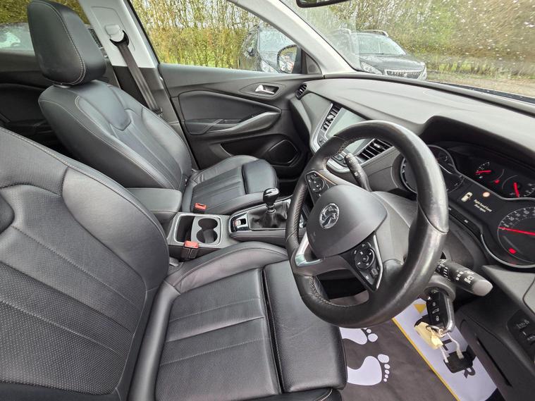 Vauxhall Grandland X 1.2 Turbo Elite Nav Euro 6 (s/s) 5dr in great condition - The owner well maintained the car - ULEZ free - The car was fully serviced last month - 2x Keys - HPI Clear - Navigation HDD - Parking Sensors - Climate Control - Leather Trim - 19'' Alloy Wheels - Panoramic Roof - Privacy Glass // 12 months AA breakdown cover included// We offer the option of an extended national warranty of up to 3 years // Driveaway insurance available // PX Welcome /This 2021 Vauxhall Grandland X Turbo Elite Nav boasts a clear vehicle history, offering you peace of mind. This stylish SUV features a 1.2 litre Euro 6 petrol engine, delivering an impressive 0-60mph time of 9.5 seconds. Inside, you'll find the Navi 5.0 Intellilink touchscreen system, complete with Android Auto and Apple CarPlay for seamless connectivity, alongside Bluetooth. Comfort is key with heated front seats and dual zone electronic climate control, all managed from the leather covered, heated, three spoke steering wheel with its satin chrome effect bezel.The Grandland X Turbo Elite Nav is designed to be economical and practical. It achieves a fuel economy of 46 miles per gallon and has low CO2 emissions, making it a more environmentally conscious choice. Its large boot space provides ample room for all your luggage or shopping needs. Furthermore, this model sits in a low insurance group, which can help to reduce your running costs. The inclusion of Side Blind Spot Alert, which incorporates Blind Spot Assistance, further enhances your safety on the road, indicating how this vehicle offers a superior driving experience compared to others in its class..