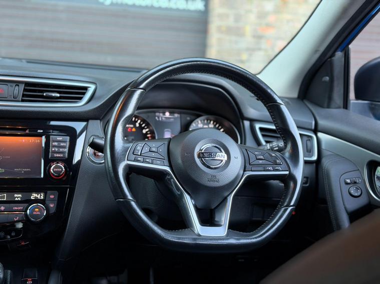 We are delighted to offer this Nissan Qashqai 1.2 Petrol Tekna, a top specification SUV that combines comfort, technology, and practicality in one stylish package. Supplied with 2 keys and a full service history, this example has been well maintained.Finished in a stunning blue with diamond cut alloy wheels, this Tekna model has a smart and modern road presence. The 1.2 petrol engine offers a smooth and economical drive, making it ideal for everyday use while keeping running costs sensible.Inside, this high spec Tekna truly stands out. It features half leather seats that are both electric and heated, providing excellent comfort for the driver and passengers. The cabin is packed with advanced technology including blind spot assist, lane assist, 360 degree surround view cameras, and the premium Bose sound system for an immersive audio experience. You also benefit from Bluetooth audio, handsfree connectivity, and DAB, FM and AM radio, ensuring you stay connected and entertained on every journey.Spacious, refined, and loaded with features, this Nissan Qashqai Tekna offers excellent value for money and is a superb family SUV with a premium feel.At Fitzroy Motor Co, all our vehicles are hand picked and purchased directly from private customers. Every vehicle is HPI clear with a report provided for your peace of mind. Each car undergoes a thorough inspection and is prepared for same day pickup. If a vehicle has six months or less MOT remaining, we provide a fresh 12 month MOT.Nationwide delivery is available from £149 and finance options are available from 8.9 percent APR with zero deposit plans.We are open seven days a week. Call us on 01425318542 to arrange a viewing or test drive..