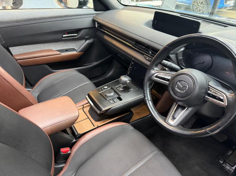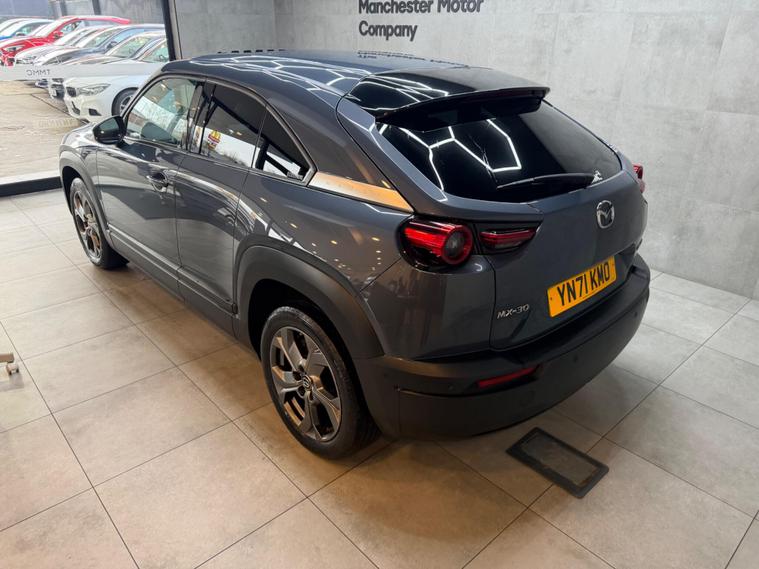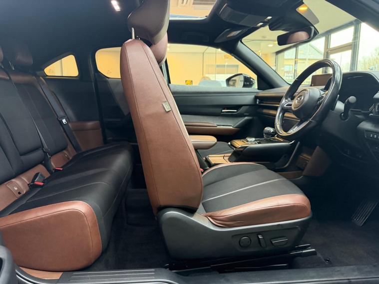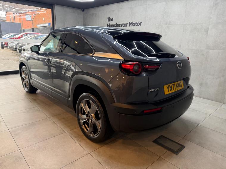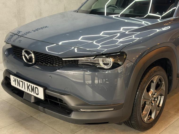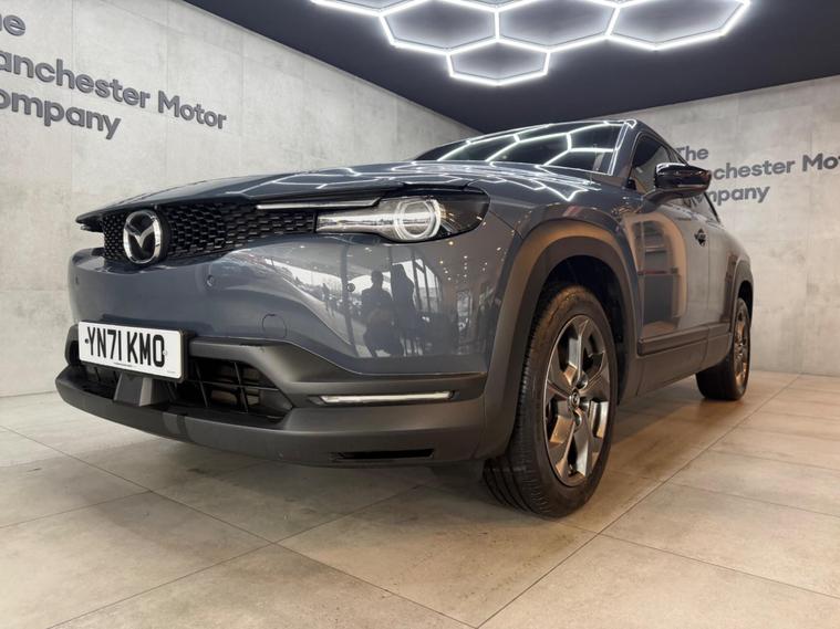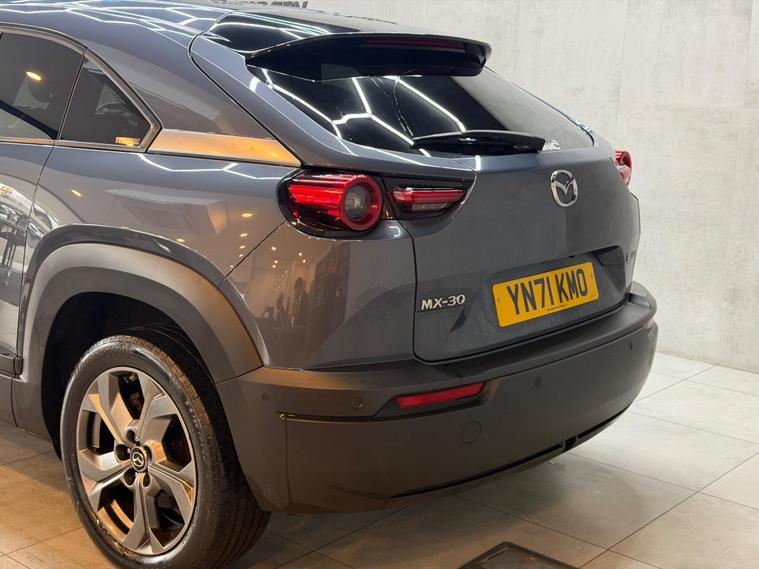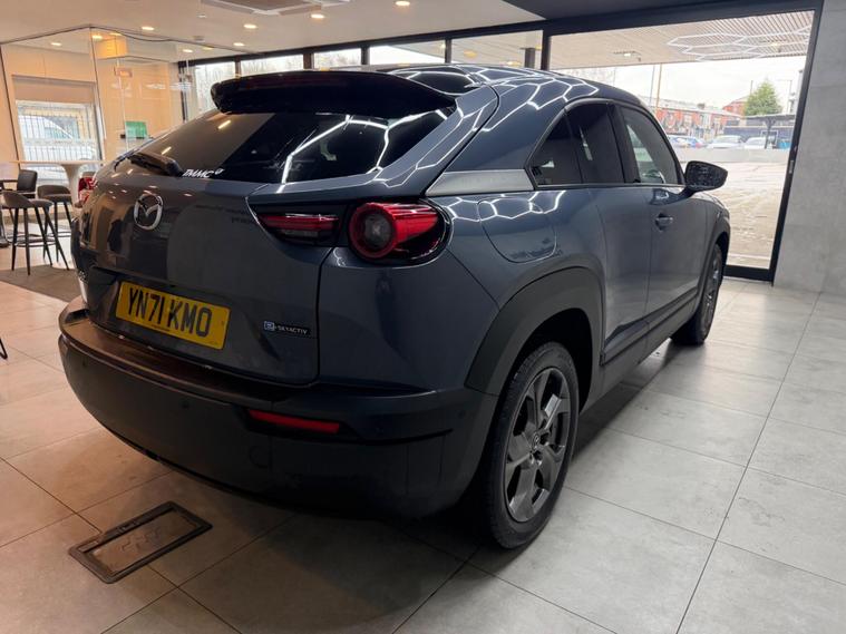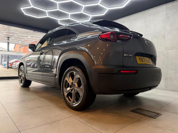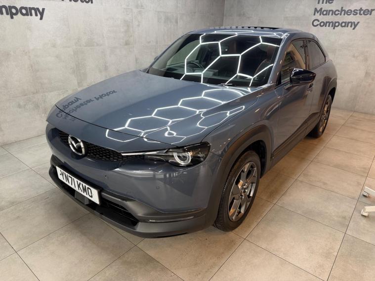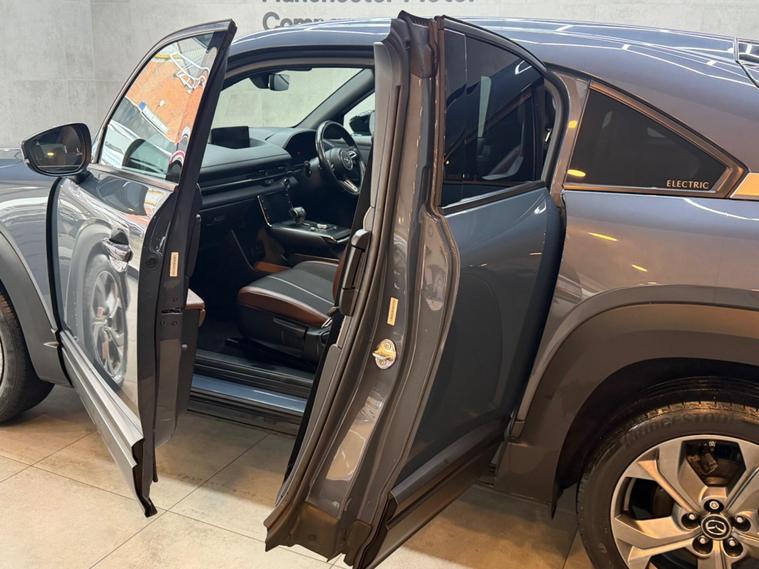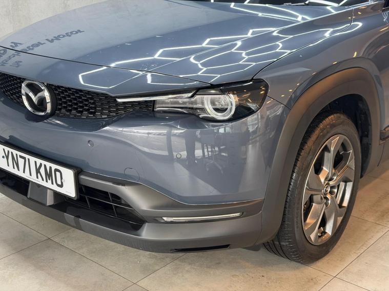 This 2022 Mazda MX-30 GT Sport Tech is an excellent example of a modern electric vehicle. As an electric car, it offers a smooth and quiet driving experience, powered by a 36 kWh battery that provides a maximum range of 124 miles when new. Charging is convenient, with a full charge at home using a 7kW charger taking approximately 5 hours. For quicker top ups, public charging can take you from empty to 80% in just 48 minutes. This GT Sport Tech model comes equipped with desirable features such as Climate Control, Smart Keyless Entry, and Integrated Bluetooth for seamless connectivity.The safety and convenience features further enhance the appeal of this Mazda MX-30. It includes Blind Spot Monitoring with Rear Cross Traffic Alert and Emergency Lane Keeping with Blind Spot Assist, systems designed to provide an extra layer of awareness and support while driving. These advanced driver assistance systems indicate how this vehicle is better equipped for modern road conditions compared to many others. The combination of its electric powertrain, comfortable interior, and comprehensive safety technology makes the 2022 Mazda MX-30 GT Sport Tech a compelling choice for those seeking an efficient and well appointed electric car..