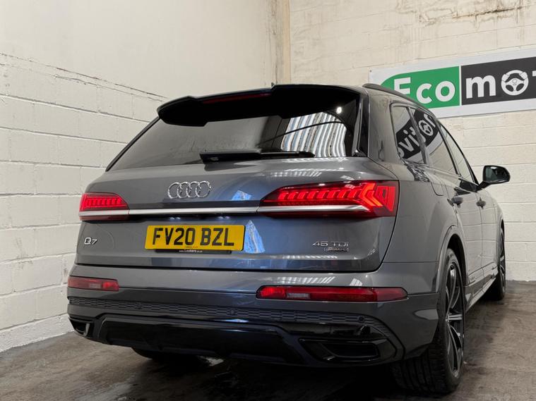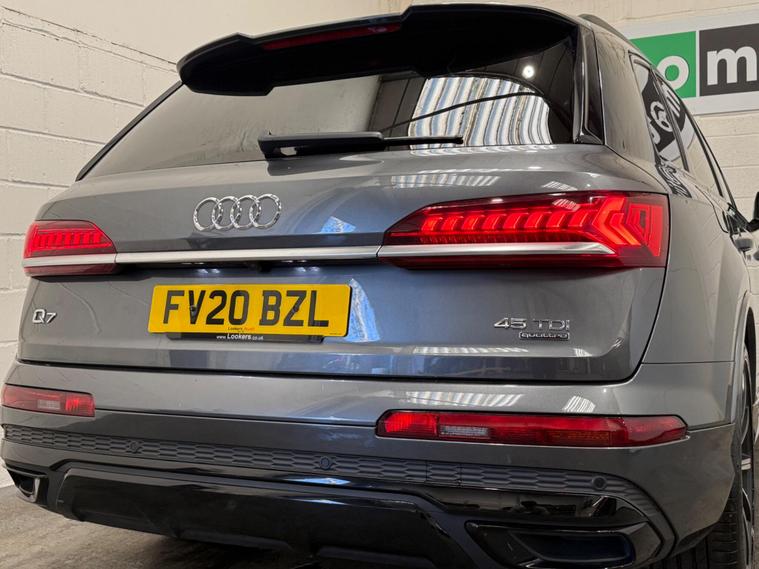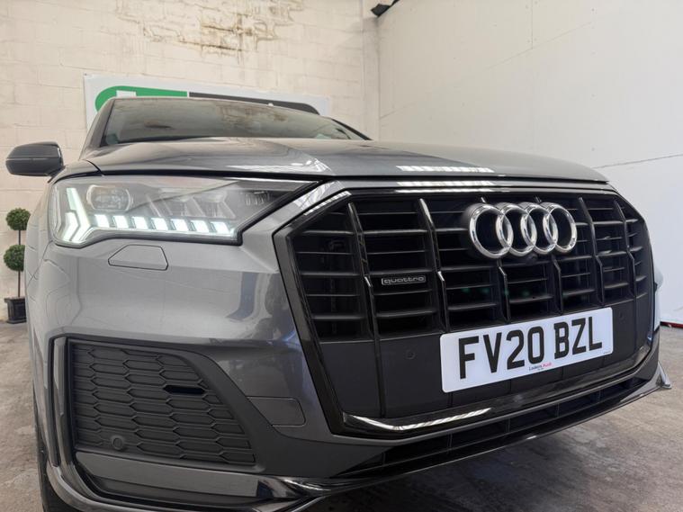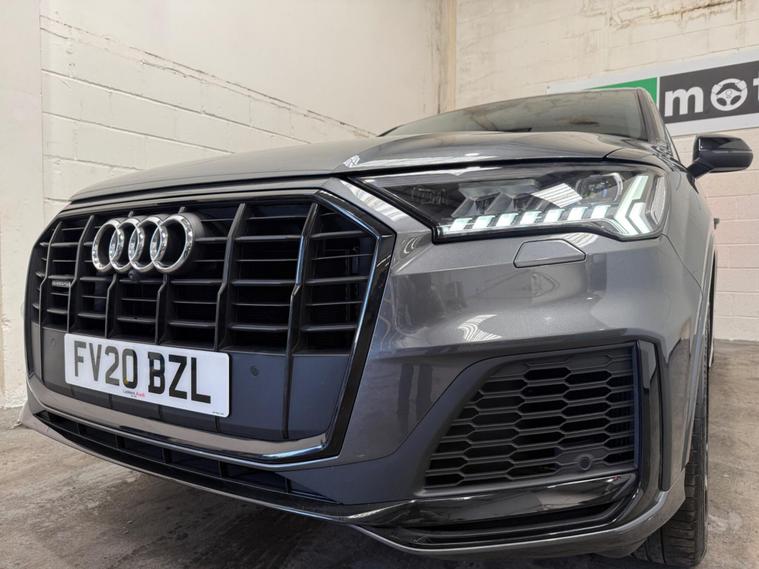This 2020 Audi Q7 TDI V6 Black Edition offers exceptional value with only one owner and remarkably low mileage for its age, having covered just 56, 387 miles. As a Euro 6 compliant model, it features a powerful 3.0L Diesel engine paired with Audi's renowned Four Wheel Drive system, ensuring confident performance in all conditions. This Black Edition variant boasts a spacious interior with seven seats, making it ideal for families or those needing extra capacity. Notable features include the Tour Pack with Adaptive Cruise Control for effortless long journeys, and the City Assist Pack which incorporates Blind Spot Assistance for enhanced safety. The striking Audi Matrix LED Headlights with dynamic indicators provide excellent visibility, while heated front seats and deluxe four-zone automatic climate control ensure comfort for all occupants.The Audi Q7 TDI V6 Black Edition stands out with its impressive acceleration, reaching 0-62mph in just 7.3 seconds, demonstrating its dynamic capability. Its substantial towing weight of 3500 kg makes it a versatile choice for those who need to tow. Furthermore, the large boot space offers practicality for luggage or shopping, and its placement in a low insurance group highlights its cost effectiveness. These aspects collectively indicate that this Q7 offers a superior ownership experience compared to many other vehicles in its class..