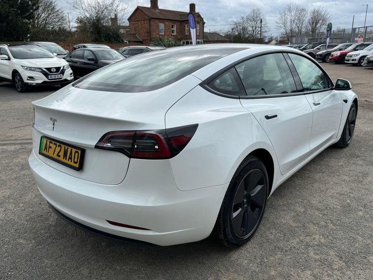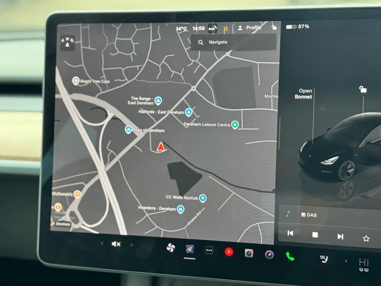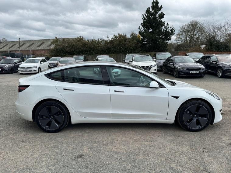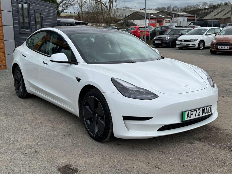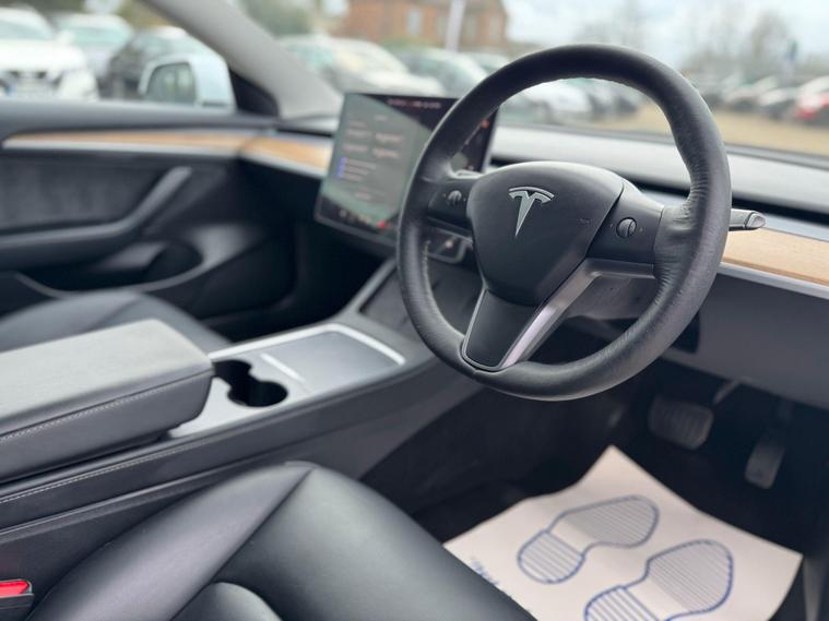 This 2022 Tesla Model 3 presents a superb ownership opportunity, having had only one owner since new. As a fully electric vehicle, it offers an impressive maximum range of 317 miles from its 62 kWh battery. Charging is convenient, taking approximately 8 hours for a full charge at home using a 7kW charger, while rapid public charging can take you from empty to 80% in just 29 minutes. Inside, you'll find a comfortable and modern cabin equipped with heated front seats, dual zone climate control, and air conditioning. For your convenience, there are inductive charging mats for two smartphones, and rear parking sensors with parking assistance help with manoeuvring.The Tesla Model 3 stands out with its generous boot space, providing ample room for your luggage and shopping. Its electric powertrain ensures a smooth and quiet driving experience, and the advanced technology, including wireless phone charging, enhances everyday usability. The combination of its long electric range, quick charging capabilities, and thoughtful features makes this Model 3 a compelling choice for those seeking an efficient and well equipped electric car..