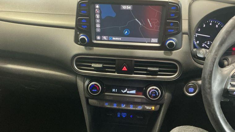 1 OWNER SINCE NEW, This 2018 Hyundai KONA T GDi Premium is a standout example, having been cherished by just one owner from new and boasting a clear vehicle history check. Under the bonnet, you'll find an efficient 1.0 litre petrol engine, meeting Euro 6 emissions standards. This Premium trim level comes equipped with a host of desirable features, including a rear view parking camera with guidance and rear parking sensors to make manoeuvring simple. Enjoy the convenience of keyless entry and start-stop button, alongside seamless phone integration with Apple CarPlay. Keeping you comfortable on every journey is the automatic climate control system. With only 48825 miles on the clock, this KONA represents excellent value, offering impressive fuel economy of 52 miles per gallon. Its low CO2 emissions and low insurance group rating further highlight its cost effectiveness compared to similar vehicles. This combination of low ownership, minimal mileage, and economical running costs makes this Hyundai KONA T GDi Premium a truly sensible choice..