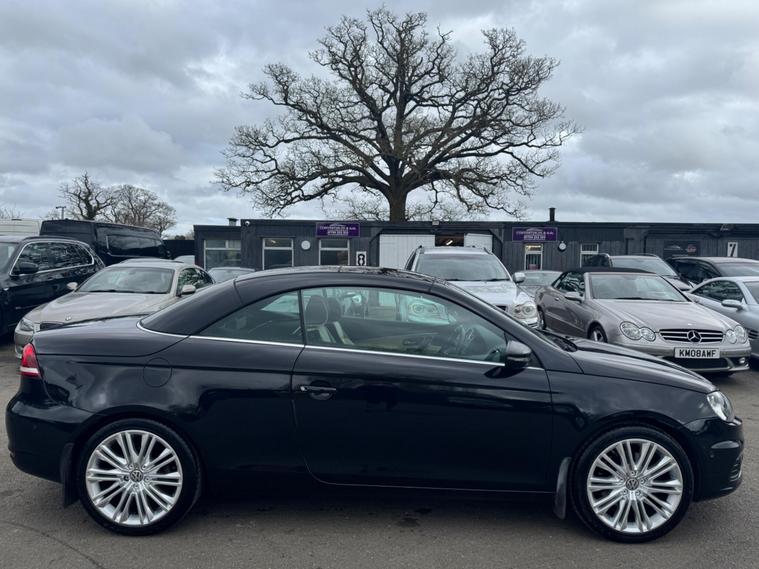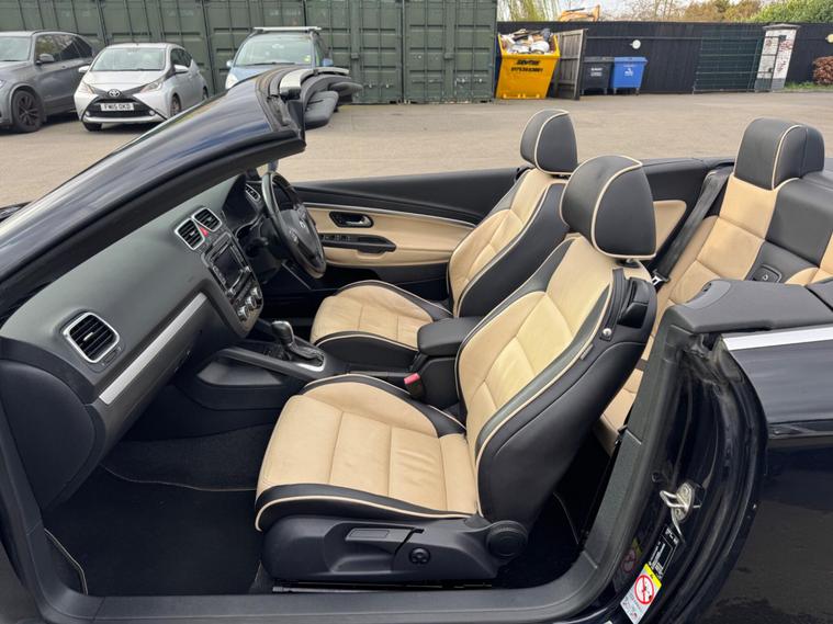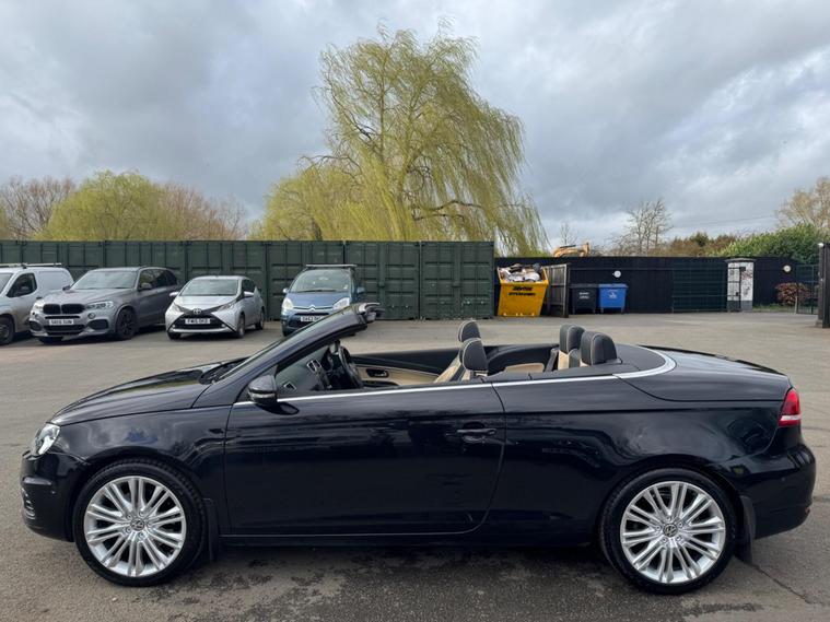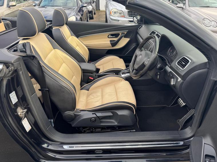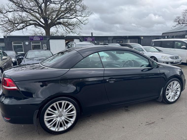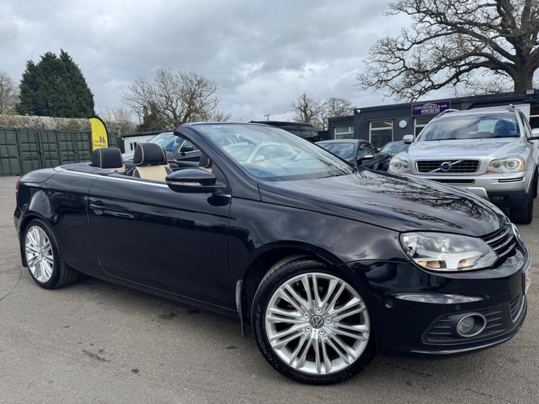 THIS Volkswagen Eos 2.0 TDI BlueMotion Tech Exclusive Cabriolet DSG AUTOMATIC Euro 5 POWER ROOF CONVERTIBLE LOOKS AMAZING IN EBONY METALLIC TWO TONE NAPPA LEATHER SAHARA BIEGE AND TITANIUM BLACK HEATED SEATS AND ALUMINIUM TRIM TO THE DASH AND DOOR CARDS YES VERY SMART. ONLY 1 OWNER & LOW MILEAGE FOR A 13 YEAR OLD CABRIOLET & THE ONE LOCAL OWNER HAS LOVED THE CABRIOLET FOR OVER 13 YEARS YOU CAN TELL THAT BY THE SUPERB CONDITION THE CONVERTIBLE IS IN YES AND IT LOW MILEAGE 75K A NEW MOT WITH NO ADVISES & A SERVICE COMES WITH SOME FACTORY EXTRAS, POWER ROOF CONVERTIBLE GLASS SUNROOF WHICH ALSO ACTS A SUNROOF WHEN HALF OPEN, CRUISE CONTRO, BLUE TOOTH TELEPHONE CONNECTION, STEREO RADIO WITH DAB & CD PLAYER, DUAL ZONE DIGITAL AIR CONDITIONING, FRONT & REAR PARKING AID, THE CAR HAS 2 SETS OF KEYS & ALL THE BOOKS AND MAUALS. This 2013 Volkswagen Eos TDI Exclusive is a standout example, having been cherished by just one owner since new. Powered by an efficient 2.0 litre diesel engine, this Exclusive trim model offers a refined driving experience. It comes equipped with the clever Park Assist system, which includes front parking sensors to aid manoeuvring, and DAB+ digital radio for enhanced entertainment. The steering wheel features paddle shifts for manual gear selection, adding a sporty feel. A key highlight is the innovative CSC roof system, a five section folding roof that incorporates a slide and tilt sunroof, allowing you to enjoy open air motoring in various configurations. Automatic driving lights, activated by a dusk sensor, ensure you always have optimal visibility. This Volkswagen Eos TDI Exclusive presents a compelling package, with its single owner provenance indicating careful use and maintenance. The inclusion of features like Park Assist and automatic headlights demonstrates a higher level of specification compared to many similar vehicles. Furthermore, its low insurance group rating makes it an economical choice for everyday driving..