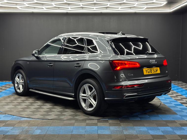 Here at Motor Gurus we are delighted to offer an Audi Q5 2.0 TDI S line S Tronic quattro. This vehicle is in very good condition when taking into consideration the vehicle's age and mileage. This specific vehicle is finished in a METALLIC GREY and is contrasted by a BLACK LEATHER interior. This vehicle comes included with: FRONT & REAR PARKING SENSORS, PRIVACY GLASS, SLIDING GLASS PANORAMIC ROOF, ELECTRIC TAILGATE, HEATED SIDE MIRRORS, FRONT HEATED SEATS, PERFORATED GRIPPED LEATHER STEERING WHEEL, CRUISE CONTROL, AUTOMATIC HEADLIGHTS, DIGITAL COCKPIT, AUTO HOLD, TWIN CUPHOLDERS, DRIVING MODES, CLIMATE CONTROL, SAT NAVIGATION, DAB RADIO, BLUETOOTH AUDIO, TELEPHONE CONNECTIVITY, WIRELESS PHONE CHARGING, TYRE PRESSURE MONITORING AND MUCH MORE! Our Audi Q5 2.0 TDI S line S Tronic quattro has come to us with SERVICE HISTORY, 2 KEYS and is a 1 FORMER KEEPER (2 owners) FROM NEW! We will also provide a 12 MONTH MOT and a FRESH OIL SERVICE before it leaves our premises (OTR)..