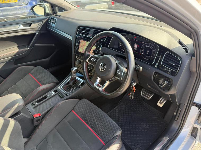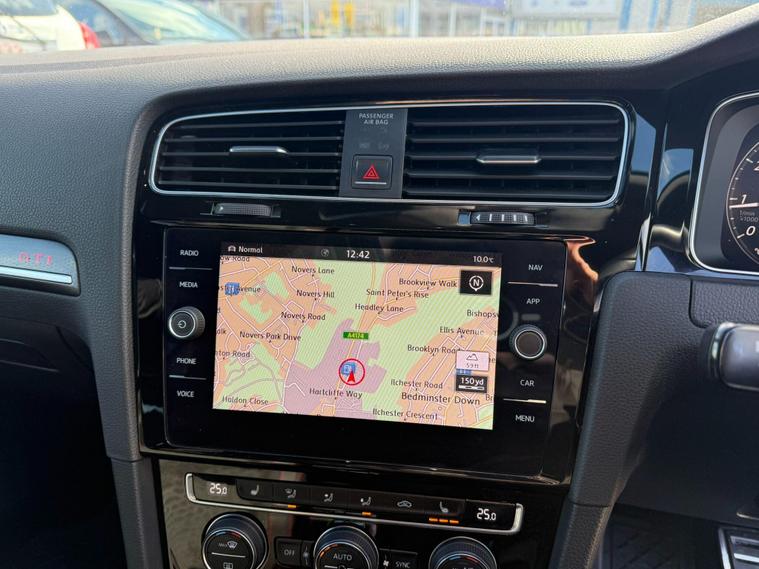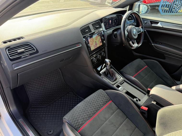 This 2018 Volkswagen Golf TSI GTI presents an exceptional ownership proposition with its full service history and remarkably low mileage of just 52, 424 miles for its age. Powered by a dynamic 2.0 litre petrol engine, this Euro 6 compliant model offers exhilarating performance, achieving 0-60mph in a swift 6.2 seconds. Inside, you'll find the sporty appeal of the Sports Honeycomb Art Velours Cloth in Black and Red, complemented by the advanced Discover Navigation Pro Touch Screen system, complete with integrated voice activation and Car Net Guide and Inform Plus. Further enhancing the driving experience are the LED Headlights with Dynamic Curve Light and the convenience of Park Assist and Climate Control.The generous boot space ensures practicality for everyday needs and longer journeys, making this Golf a versatile choice. The combination of its impressive acceleration, sophisticated navigation, and driver assistance features like Park Assist and Dynamic Curve Light, clearly sets this GTI apart from other vehicles in its class. This well maintained and feature rich Volkswagen Golf TSI GTI is ready for its next adventure..