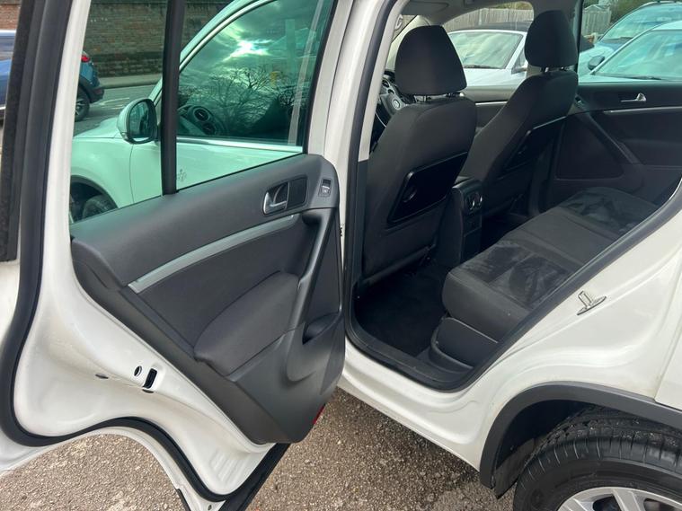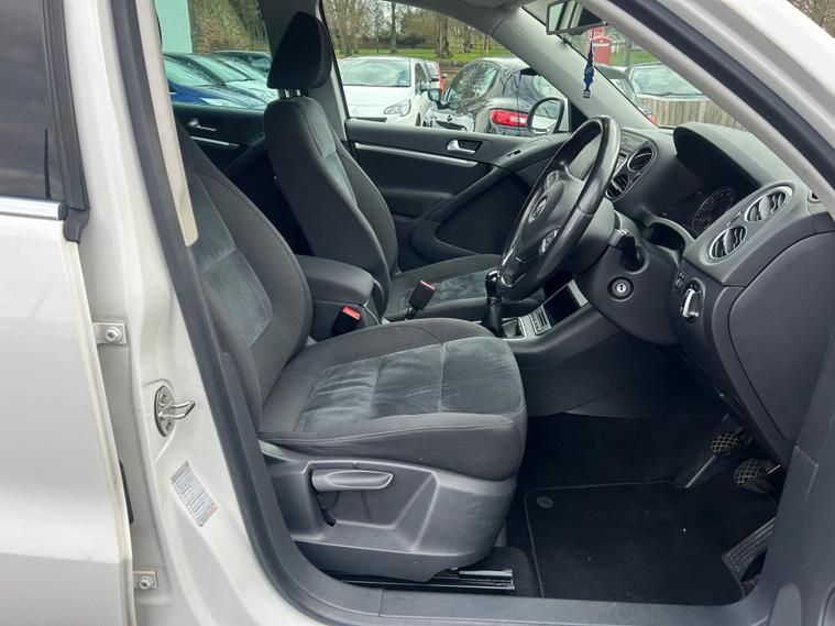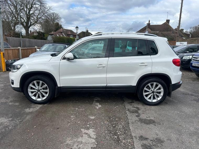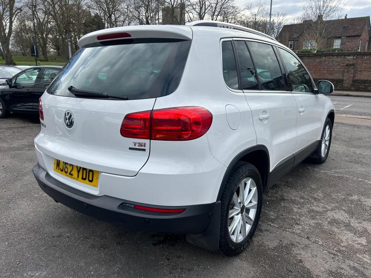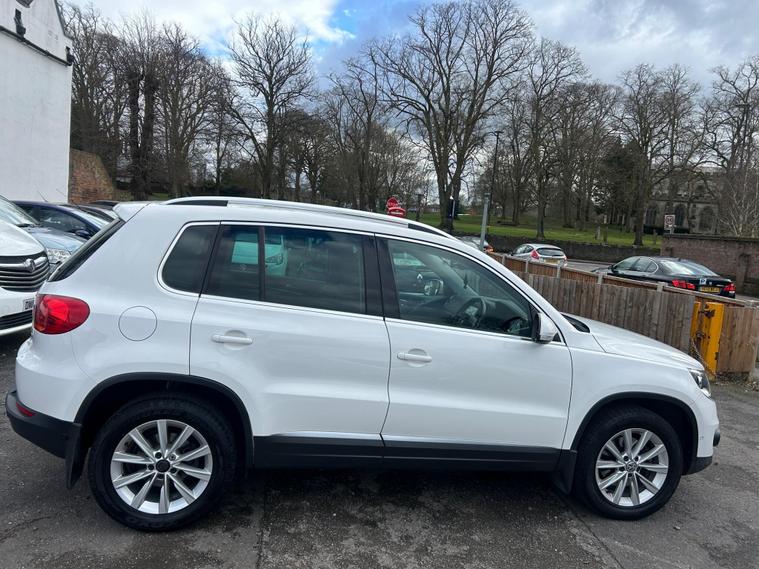 This 2012 Volkswagen Tiguan TSI SE offers peace of mind with a clear vehicle history check. This well presented example features a 1.4 litre petrol engine and SE trim, and comes equipped with Bluetooth telephone preparation for seamless connectivity. Navigating tight spaces is made easier with Park Assist, which includes front and rear parking sensors, and the convenience of automatic dusk sensing headlights ensures visibility is always optimised.The Tiguan TSI SE stands out with its impressive acceleration, reaching 0 to 62 miles per hour in just 8.9 seconds, indicating a responsive driving experience. Furthermore, its placement in a low insurance group makes it a more economical choice for many drivers, highlighting its value compared to similar vehicles..