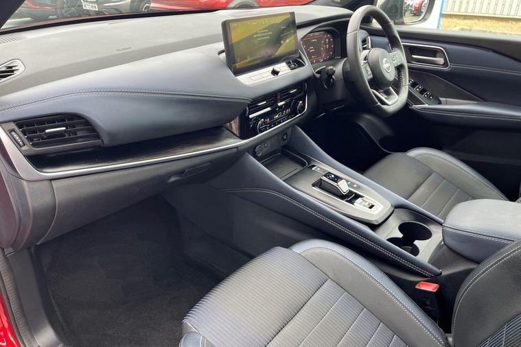 This 2023 Nissan Qashqai h e-POWER Tekna is a Nissan manufacturer approved vehicle, offering peace of mind. This stylish SUV is equipped with a 1.5 litre petrol hybrid engine, meeting Euro 6 emission standards. Inside, you'll find a host of advanced features designed for your convenience and safety, including Intelligent Blind Spot Intervention, an Advanced Windscreen Head Up Display, and Intelligent Around View Monitor with a 360 degree camera, complemented by a Rear View Camera for effortless parking. Comfort is also a priority, with Heated Front Seats ensuring a pleasant drive in all conditions.Experience impressive performance with this Qashqai, accelerating from 0 to 62 miles per hour in just 7.9 seconds. Its fuel economy is a notable highlight, achieving up to 53 miles per gallon, which indicates it is more economical than many similar vehicles. Furthermore, this model boasts low CO2 emissions, demonstrating its environmental consideration, and offers generous large boot space, making it a practical choice for families and everyday life..