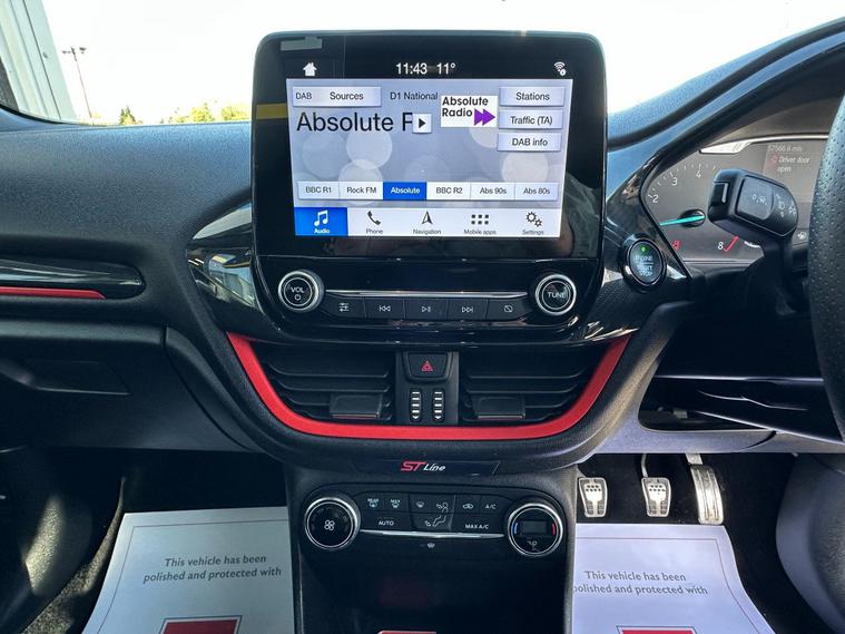 This 2019 Ford Fiesta ST-Line X boasts a recent full service completed on 12th December 2025 at 57, 460 miles, offering you peace of mind. This Euro 6 compliant 1.0L petrol model comes with a 3 month warranty, and features the desirable ST-Line X trim. You'll appreciate the convenience of automatic on-off and highbeam headlights, along with the integrated Ford Navigation System featuring Ford SYNC 3, which seamlessly connects your Apple CarPlay and Android Auto. The electronic automatic temperature control ensures a comfortable cabin environment, and Bluetooth connectivity keeps you connected on the go.The Ford Fiesta ST-Line X is designed for an engaging drive, achieving 0-62mph in just 10.6 seconds. Its low CO2 emissions highlight its efficiency, making it a more economical choice compared to many other vehicles in its class. This model also includes the NCAP Pack for added safety.This vehicle was last serviced at 57460 miles and has MOT until March 2027.It is presented in excellent condition throughout and drives like wise. Viewing, test drive and inspection welcome.Finance available..