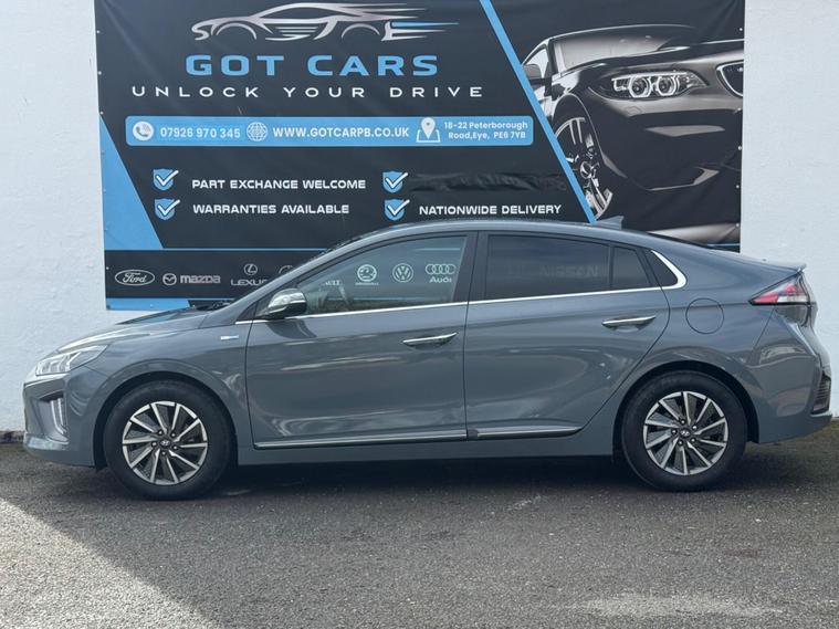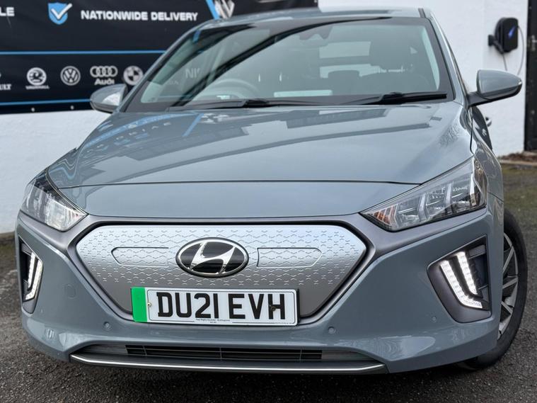 This 2021 Hyundai IONIQ Premium SE is presented with a clear vehicle history check, offering peace of mind for its next owner. This electric model boasts a 42 kWh battery, providing a maximum range of 184 miles when new. Recharging at home with a 7kW charger takes approximately 6 hours and 5 minutes, while rapid public charging can replenish the battery from empty to 80% in just 54 minutes. The Premium SE trim level comes equipped with a suite of convenient features, including a rear camera and guidance system, front and rear parking sensors, and smart adaptive cruise control for effortless journeys.Experience enhanced comfort and practicality with this Hyundai IONIQ. The Premium SE variant includes a heated steering wheel for those colder mornings and a wireless phone charging pad to keep your devices powered up. Its generous boot space is a significant advantage, offering ample room for shopping, luggage, or equipment. These thoughtful additions and the efficient electric powertrain make this IONIQ a compelling choice, offering a refined and convenient driving experience that stands out from other vehicles in its class..