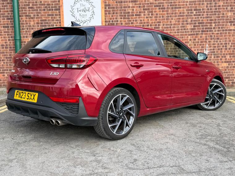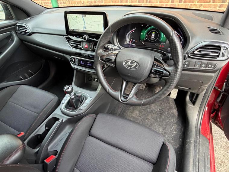 Hyundai i30 T-GDi N Line boasts a full dealership service history from its single owner, ensuring excellent provenance. ⭐️COMES WITH 12 MONTHS AA BREAKDOWN RECOVERY 3 MONTHS WARRANTY FREE OF CHARGE AND A FRESH MOT & SERVICE FULLY HPI CLEAR AND CHECKED⭐️ This stylish hatchback features a 1.5 litre petrol hybrid engine, meeting Euro 6 emissions standards. You'll find convenience with its rear camera and guidance system, alongside front and rear parking sensors for effortless manoeuvring. Enjoy seamless connectivity with Bluetooth and Android Auto, all while benefiting from bright LED headlights.Experience impressive performance with an acceleration of 0 to 62 miles per hour in just 8.6 seconds, demonstrating its capability compared to other vehicles in its class. The i30 N Line also offers generous boot space, making it a practical choice for everyday needs and longer journeys..