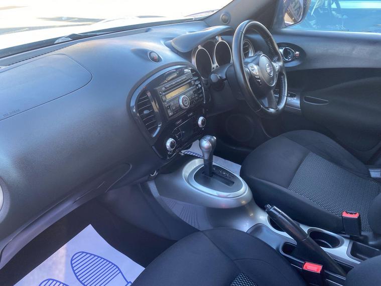 This NISSAN JUKE features rare automatic hatchback with a high-riding stance plus a touch of SUV style, Finished in popular white colourway, March 2027 Mot, Road tax band F at 215 pounds per year, spec including Black Alloys, CD player with Aux/USB/ Cruise Control, Rear Sensors, Climate control, Air con, E/windows, E/Mirrors, Remote c/locking with both keys supplied , Multi airbags, HPI clear with certificate, No admin fees to pay, All Included in the price is a 12 month warranty with the first month given as unconditional, and then a further 11 months covering the most major parts, driveaway insurance available (Ts & Cs apply).